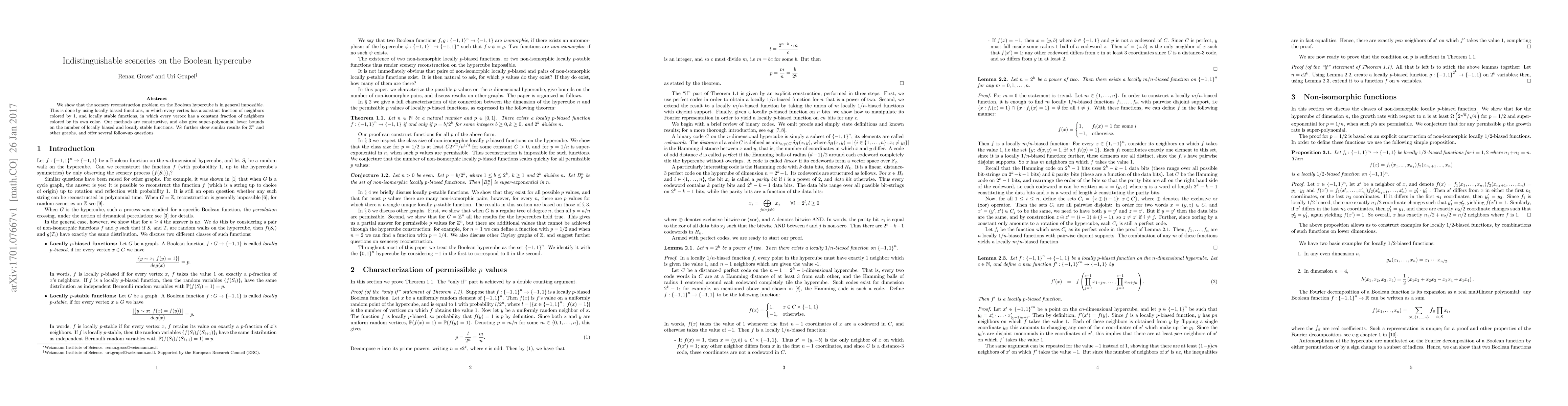 The paper demonstrates that the scenery reconstruction problem on the Boolean hypercube is generally impossible, using locally biased and locally stable functions. It also provides constructive methods to establish super-polynomial lower bounds on these functions and extends similar results to $\mathbb{Z}^n$ and other graphs.