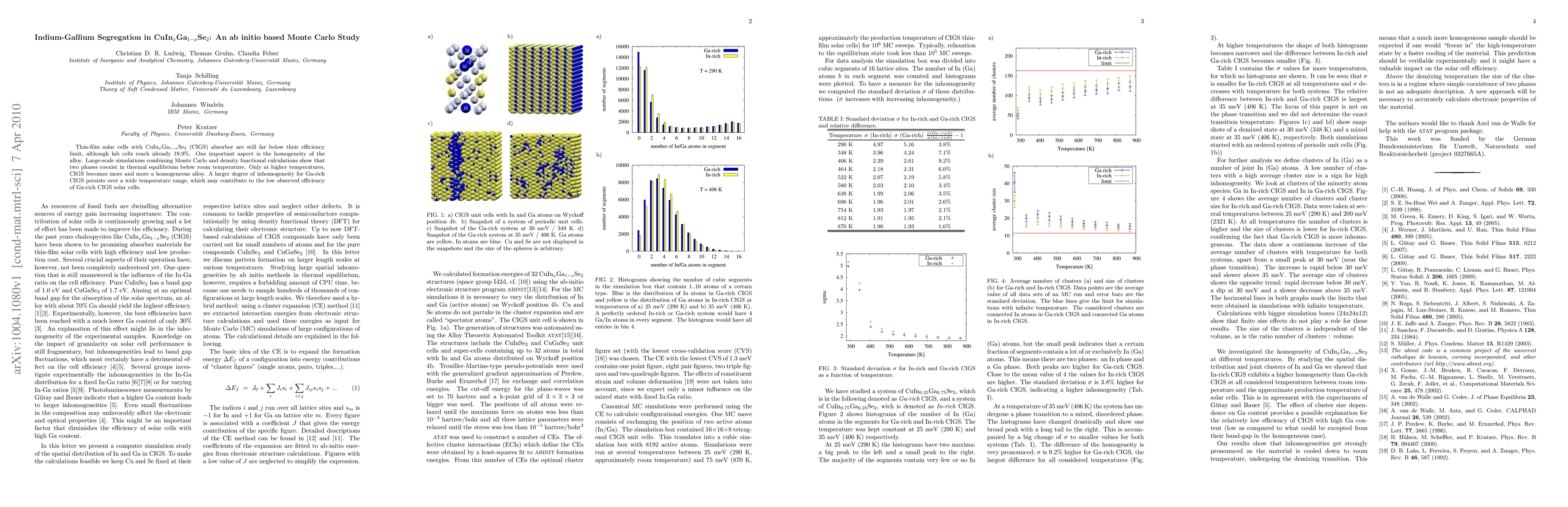 Thin-film solar cells with CuIn$_x$Ga$_{1-x}$Se$_2$ absorber have low efficiency due to inhomogeneity; a Monte Carlo study reveals two phases coexist at room temperature and Ga-rich CIGS persists over wide temp range.