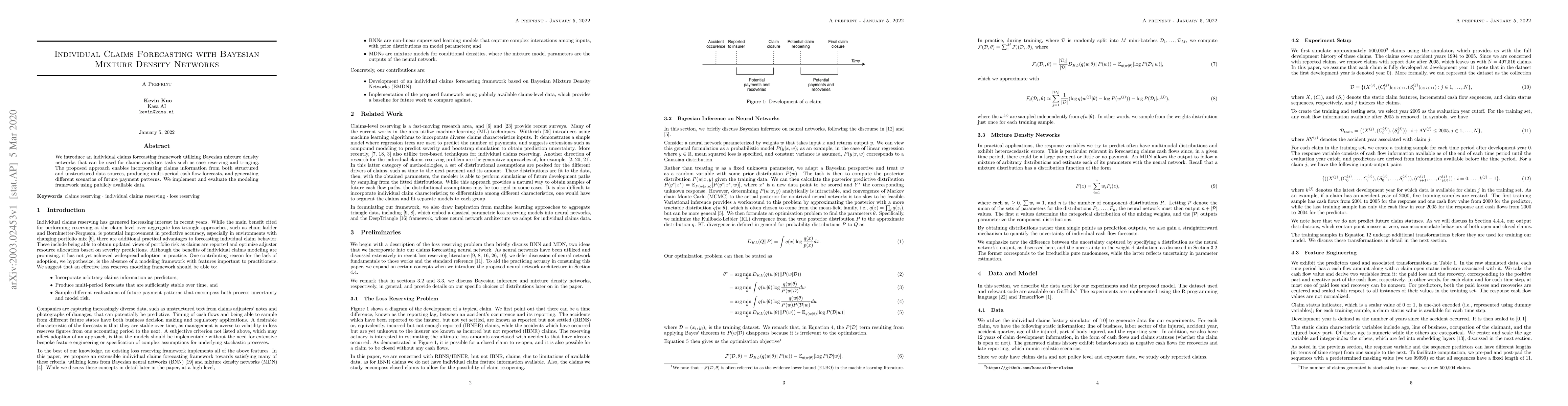 A new approach using Bayesian mixture density networks forecasts individual claims with multi-period cash flow predictions and scenarios of future payment patterns.