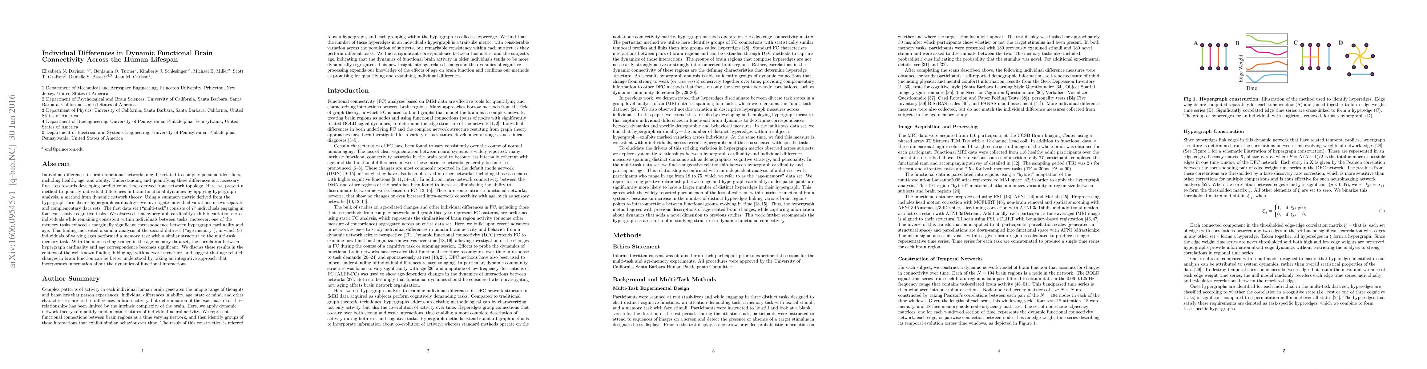 This study employs hypergraph analysis to quantify individual differences in dynamic functional brain connectivity across the lifespan. Findings reveal significant age-related variations in hypergraph cardinality, suggesting that dynamic network approaches can better understand age-associated changes in brain function.