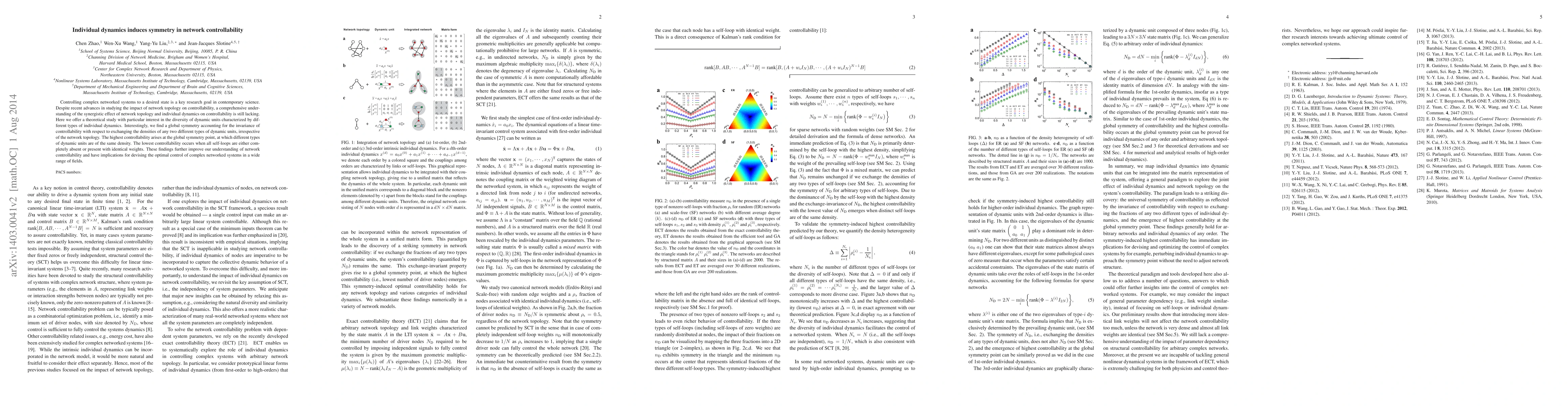 Controlling complex networked systems to a desired state is a key research goal in contemporary science. Despite recent advances in studying the impact of network topology on controllability, a comprehensive understanding of the synergistic effect of network topology and individual dynamics on controllability is still lacking. Here we offer a theoretical study with particular interest in the diversity of dynamic units characterized by different types of individual dynamics. Interestingly, we find a global symmetry accounting for the invariance of controllability with respect to exchanging the densities of any two different types of dynamic units, irrespective of the network topology. The highest controllability arises at the global symmetry point, at which different types of dynamic units are of the same density. The lowest controllability occurs when all self-loops are either completely absent or present with identical weights. These findings further improve our understanding of network controllability and have implications for devising the optimal control of complex networked systems in a wide range of fields.