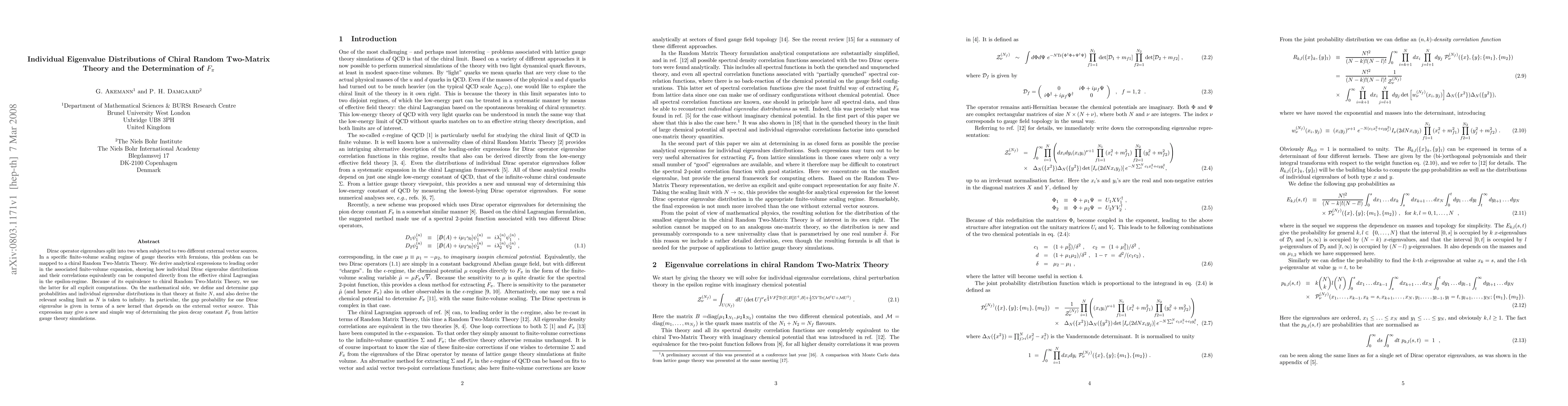 This paper derives analytical expressions for individual Dirac eigenvalue distributions in chiral Random Two-Matrix Theory, mapping them to the effective chiral Lagrangian in the epsilon-regime. It proposes a new method to determine the pion decay constant F_pi using the gap probability in this theory.