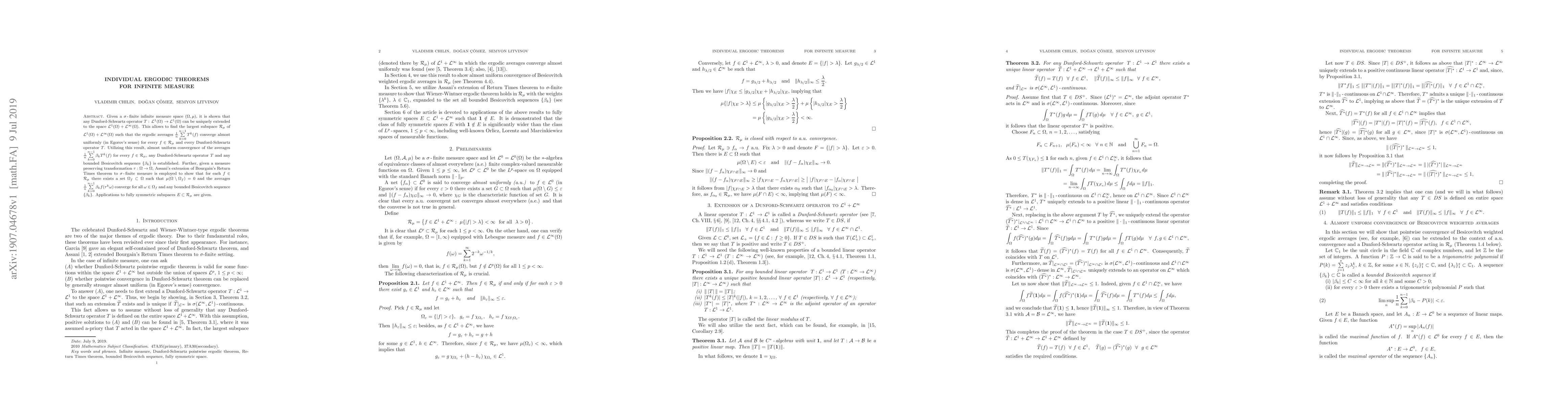 Given a $\sigma$-finite infinite measure space $(\Omega,\mu)$, it is shown that any Dunford-Schwartz operator $T:\,\mathcal L^1(\Omega)\to\mathcal L^1(\Omega)$ can be uniquely extended to the space $\mathcal L^1(\Omega)+\mathcal L^\infty(\Omega)$. This allows to find the largest subspace $\mathcal R_\mu$ of $\mathcal L^1(\Omega)+\mathcal L^\infty(\Omega)$ such that the ergodic averages $\frac1n\sum\limits_{k=0}^{n-1}T^k(f)$ converge almost uniformly (in Egorov's sense) for every $f\in\mathcal R_\mu$ and every Dunford-Schwartz operator $T$. Utilizing this result, almost uniform convergence of the averages $\frac1n\sum\limits_{k=0}^{n-1}\beta_kT^k(f)$ for every $f\in\mathcal R_\mu$, any Dunford-Schwartz operator $T$ and any bounded Besicovitch sequence $\{\beta_k\}$ is established. Further, given a measure preserving transformation $\tau:\Omega\to\Omega$, Assani's extension of Bourgain's Return Times theorem to $\sigma$-finite measure is employed to show that for each $f\in\mathcal R_\mu$ there exists a set $\Omega_f\subset\Omega$ such that $\mu(\Omega\setminus\Omega_f)=0$ and the averages $\frac1n\sum\limits_{k=0}^{n-1}\beta_kf(\tau^k\omega)$ converge for all $\omega\in\Omega_f$ and any bounded Besicovitch sequence $\{\beta_k\}$. Applications to fully symmetric subspaces $E\subset\mathcal R_\mu$ are given.