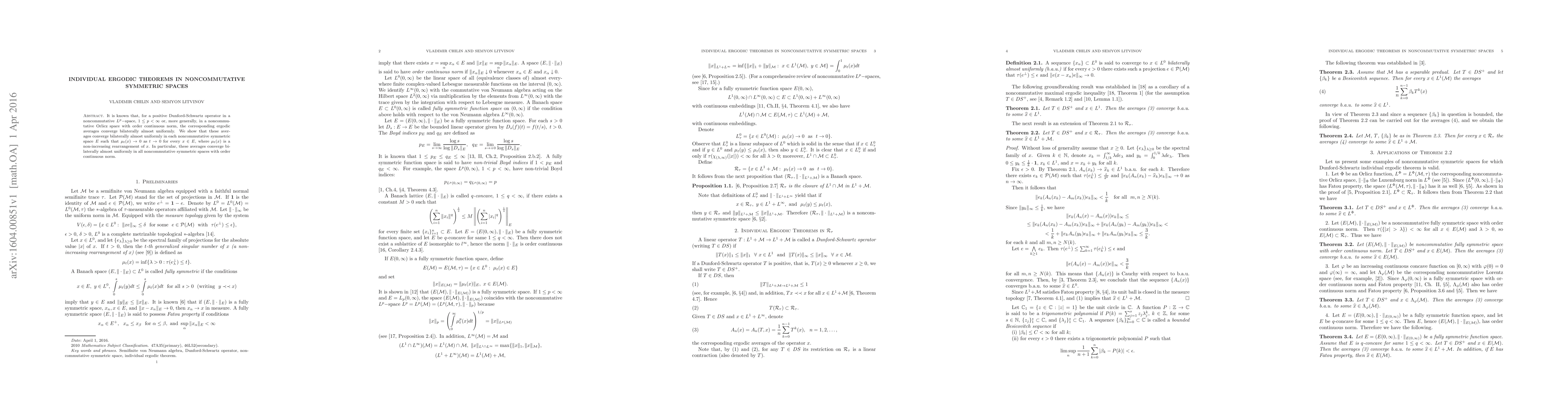 This paper demonstrates that ergodic averages converge bilaterally almost uniformly in noncommutative symmetric spaces where the non-increasing rearrangement of elements tends to zero as a parameter approaches zero. This result extends the convergence to all noncommutative symmetric spaces with order continuous norms.