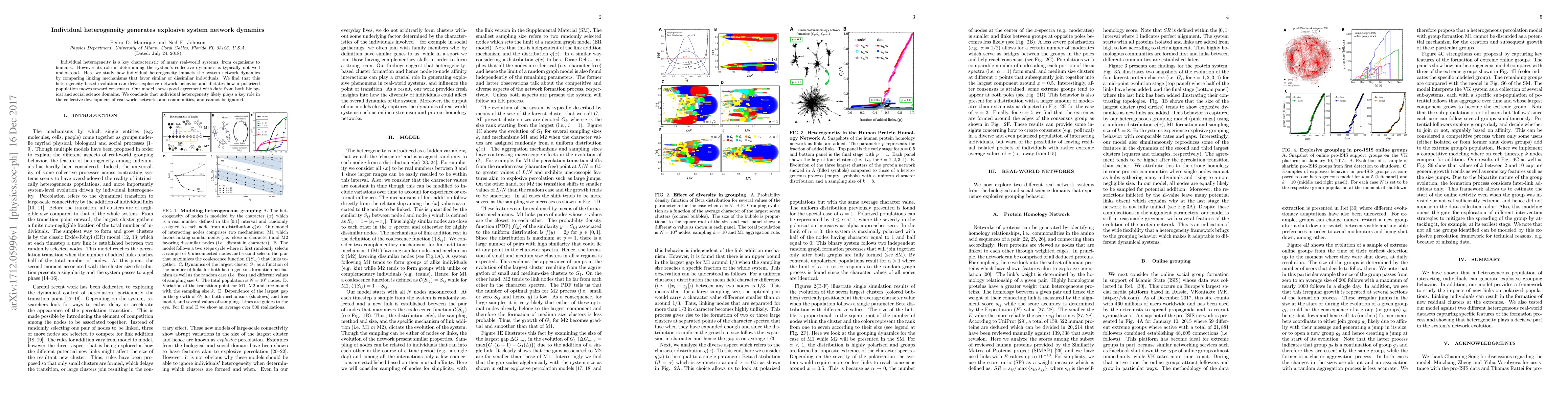This paper investigates how individual heterogeneity influences system network dynamics, revealing that it can lead to explosive network behavior and affects consensus formation in polarized populations. The study's findings, supported by biological and social data, underscore the importance of heterogeneity in shaping real-world networks.