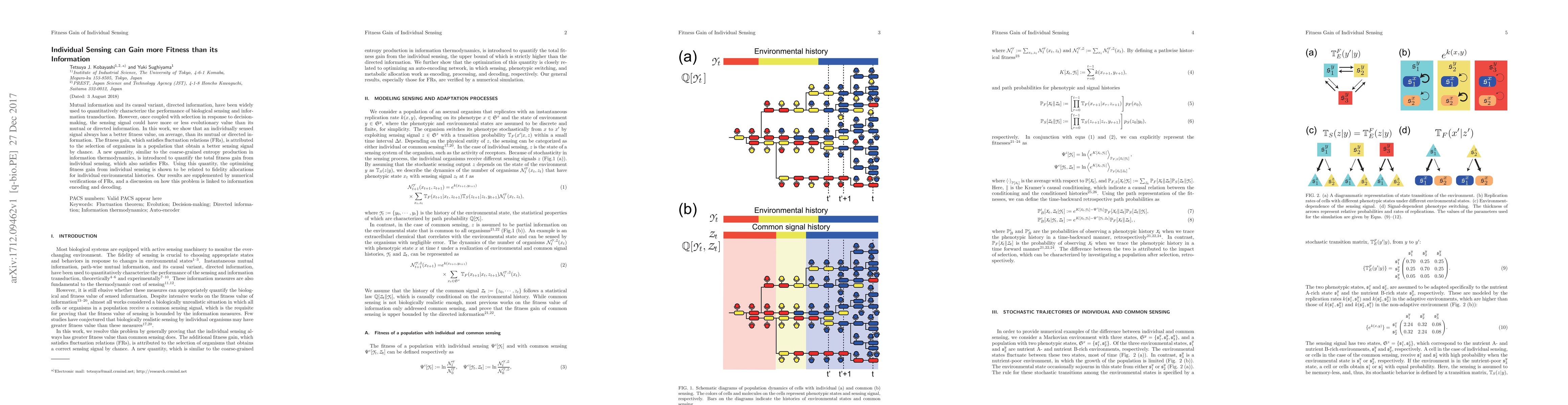 This research reveals that individual sensing in biological systems can yield better fitness outcomes than mutual or directed information suggests, due to population selection. A new quantity, analogous to coarse-grained entropy production, measures this fitness gain, which also adheres to fluctuation relations. The findings highlight the connection between information fidelity and evolutionary fitness.
