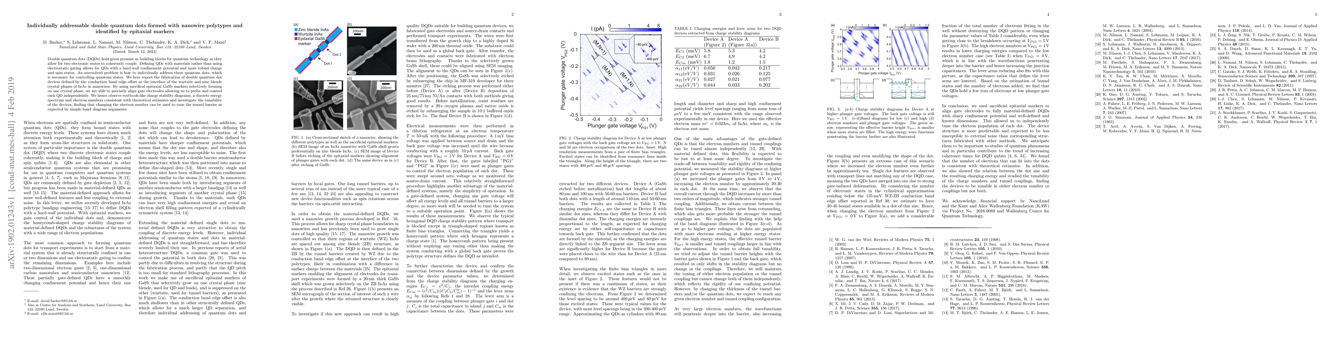 Double quantum dots (DQDs) hold great promise as building blocks for quantum technology as they allow for two electronic states to coherently couple. Defining QDs with materials rather than using electrostatic gating allows for QDs with a hard-wall confinement potential and more robust charge and spin states. An unresolved problem is how to individually address these quantum dots, which is necessary for controlling quantum states. We here report the fabrication of double quantum dot devices defined by the conduction band edge offset at the interface of the wurtzite and zinc blende crystal phases of InAs in nanowires. By using sacrifical epitaxial GaSb markers selectively forming on one crystal phase, we are able to precisely align gate electrodes allowing us to probe and control each QD independently. We hence observe textbook-like charge stability diagrams, a discrete energy spectrum and electron numbers consistent with theoretical estimates and investigate the tunability of the devices, finding that changing the electron number can be used to tune the tunnel barrier as expected by simple band diagram arguments.