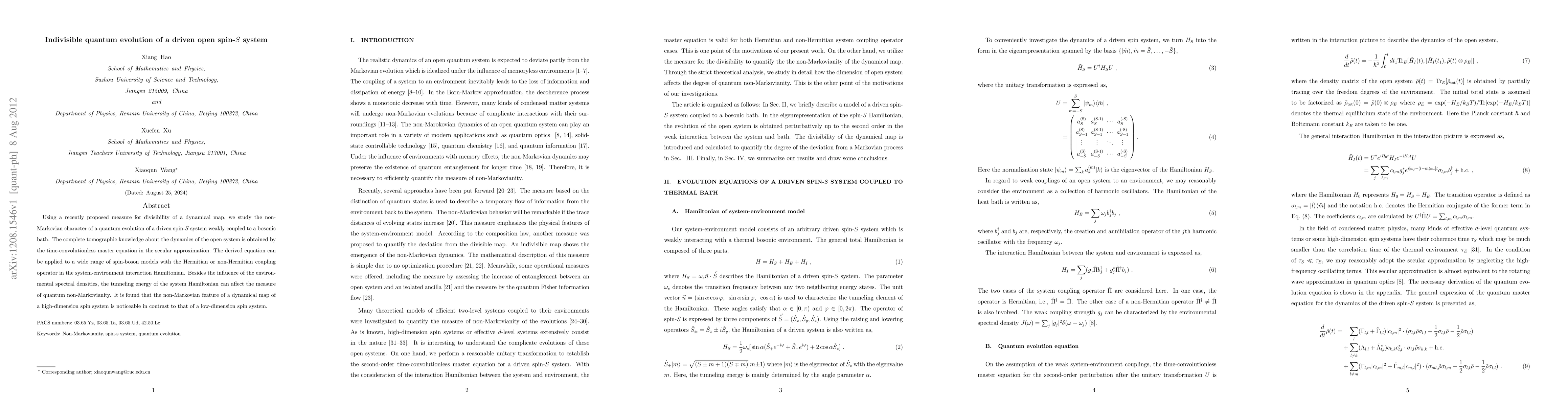 This paper investigates the non-Markovian quantum evolution of a driven open spin-$S$ system weakly coupled to a bosonic bath using a new measure of divisibility. The study employs the time-convolutionless master equation to obtain complete tomographic knowledge of the dynamics, revealing that high-dimension spin systems exhibit more noticeable non-Markovian features compared to low-dimension systems.