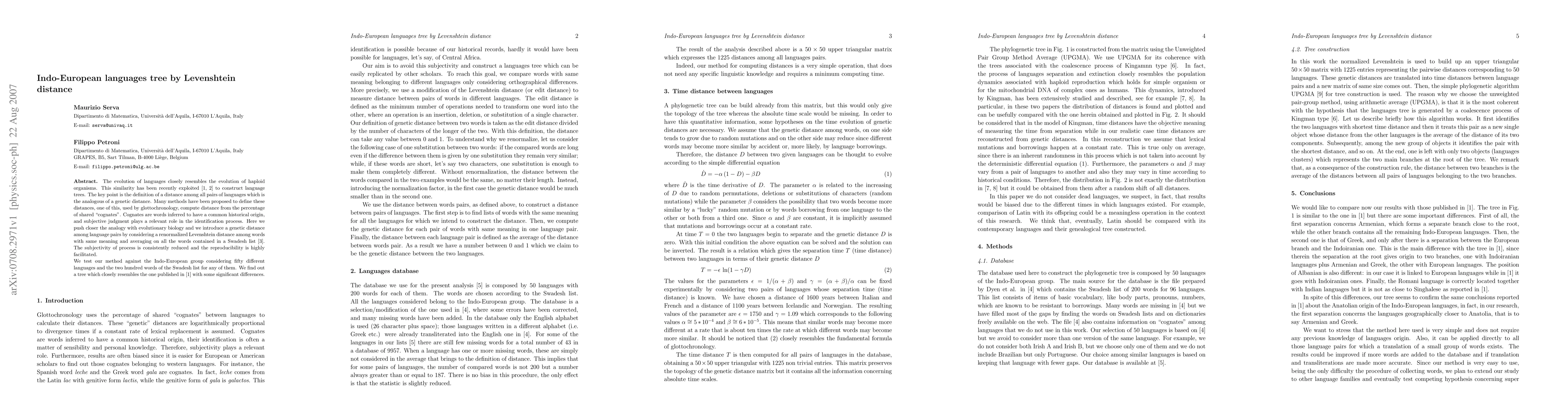 This paper proposes a novel method to construct language trees using a renormalized Levenshtein distance among cognate words, reducing subjectivity and improving reproducibility. The method is tested on Indo-European languages, producing a tree that closely resembles previous models but with notable differences.