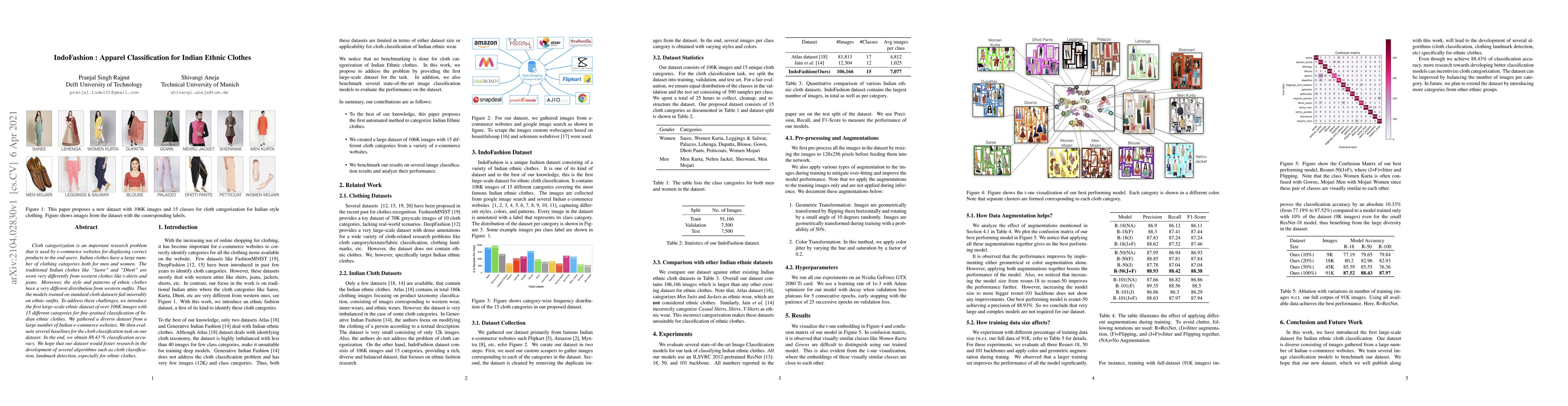 This paper introduces a large-scale dataset of over 106k images for classifying Indian ethnic clothes, addressing the failure of standard cloth models on ethnic outfits. The study achieves 88.43% classification accuracy and aims to promote research in ethnic cloth classification and related algorithms.
