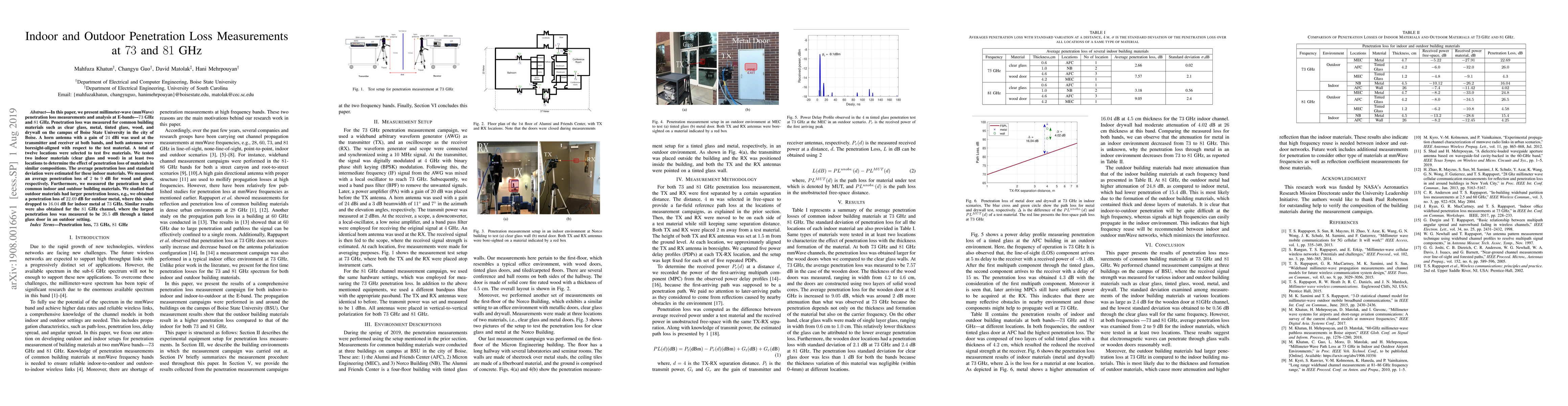 This paper measures the penetration loss of millimeter-wave (mmWave) signals at 73 and 81 GHz through various building materials, finding that outdoor materials generally exhibit higher losses than indoor ones, with notable differences observed between indoor and outdoor metals.