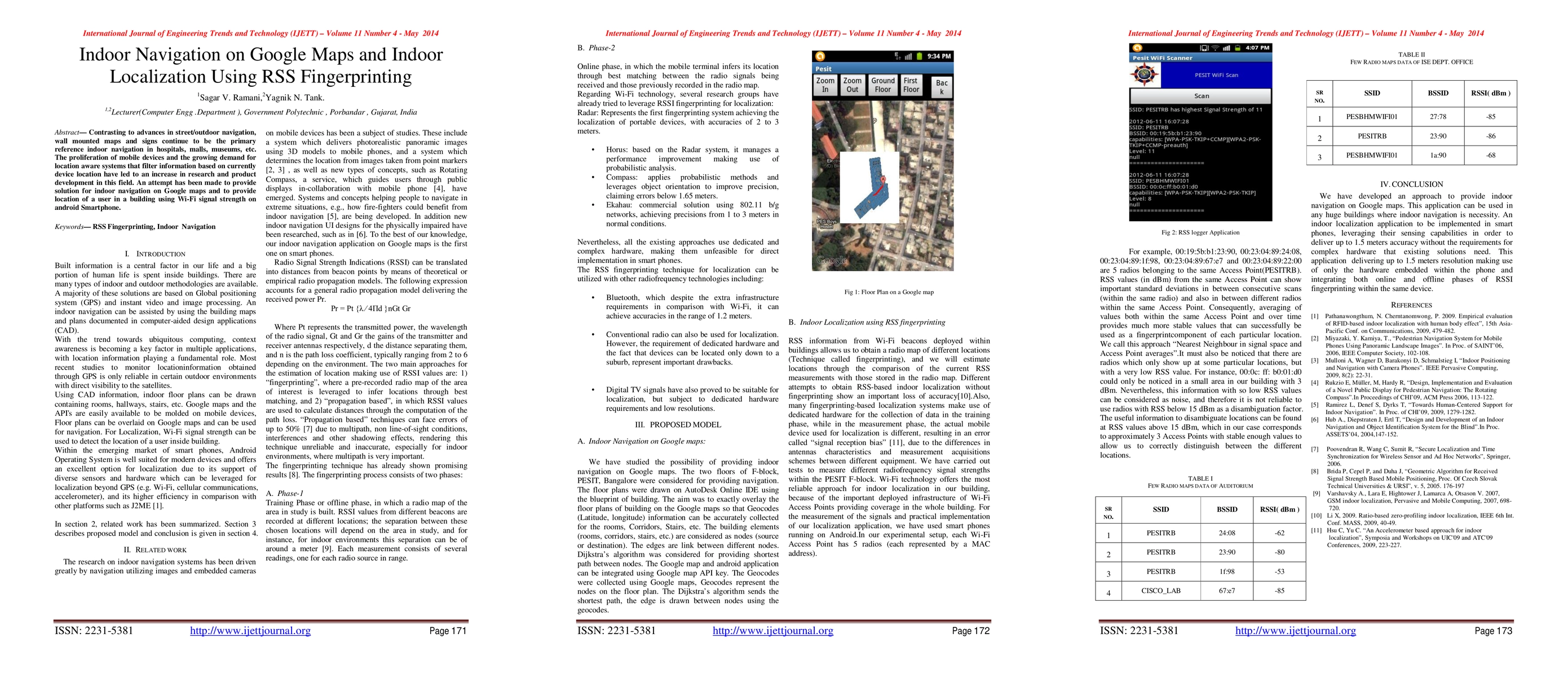 This paper explores indoor navigation solutions on Google Maps and proposes a method for indoor localization using RSS fingerprinting on Android smartphones, aiming to improve navigation in environments like hospitals and malls. The research leverages Wi-Fi signal strength to determine user location within a building.