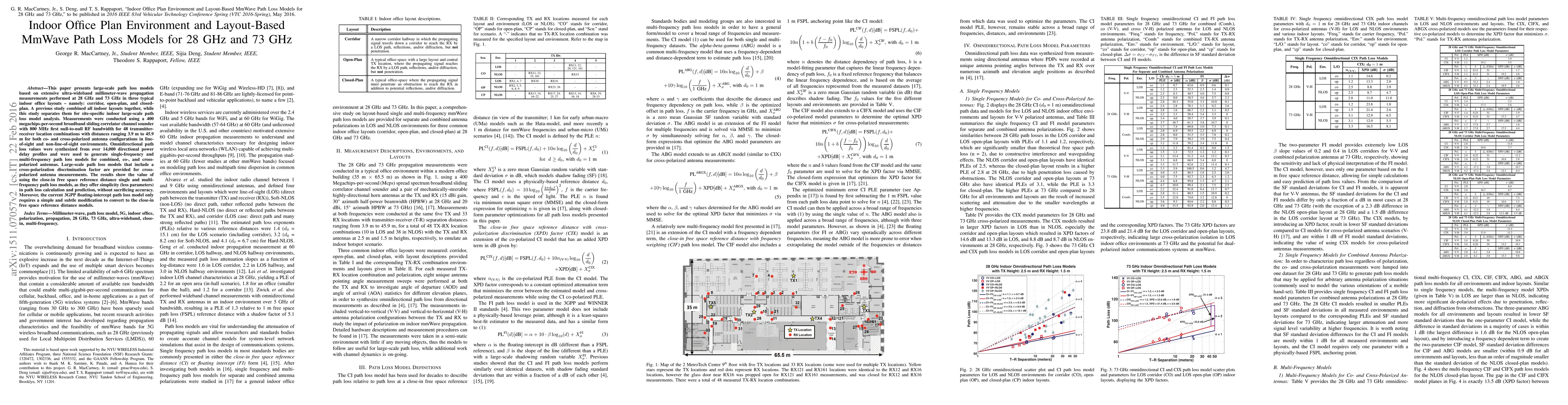 This paper develops separate large-scale path loss models for 28 GHz and 73 GHz millimeter-wave propagation in three distinct indoor office layouts, using extensive ultra-wideband measurements. The study highlights the benefits of using close-in free space reference distance models for simplicity and accuracy in path loss calculations.