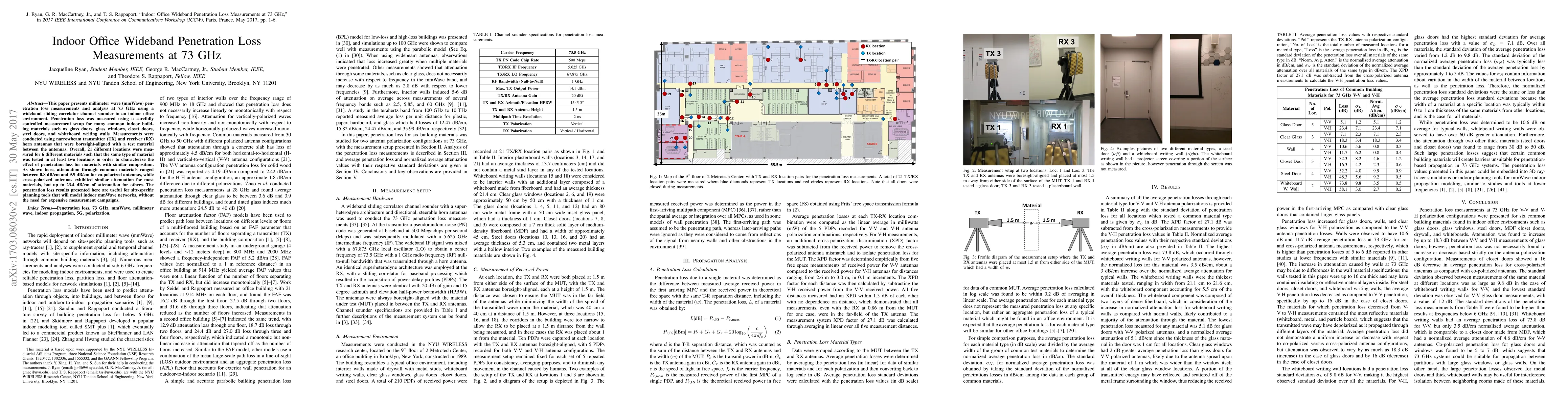 This study measures millimeter wave penetration loss at 73 GHz through various indoor materials using a wideband channel sounder, finding attenuation ranges from 0.8 dB/cm to 23.4 dB/cm, aiding in the planning of indoor mmWave networks.