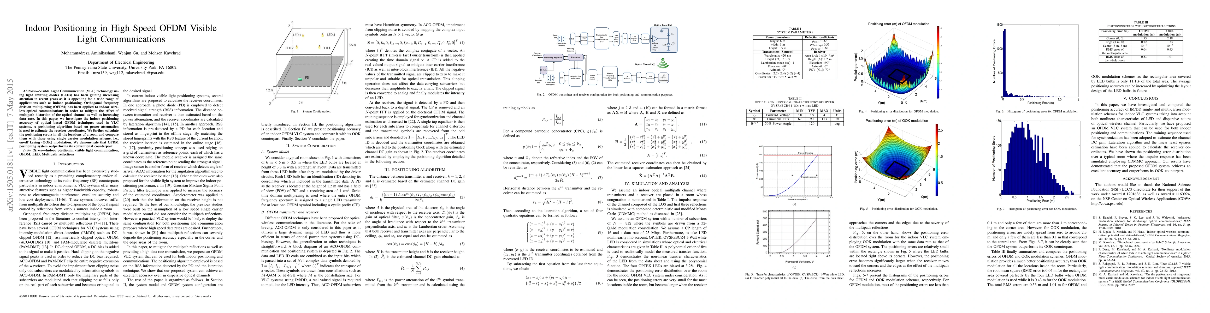 This paper investigates the indoor positioning accuracy of OFDM-based VLC systems, employing a power attenuation algorithm to estimate receiver coordinates. It demonstrates that OFDM techniques outperform conventional OOK modulation in terms of positioning accuracy.