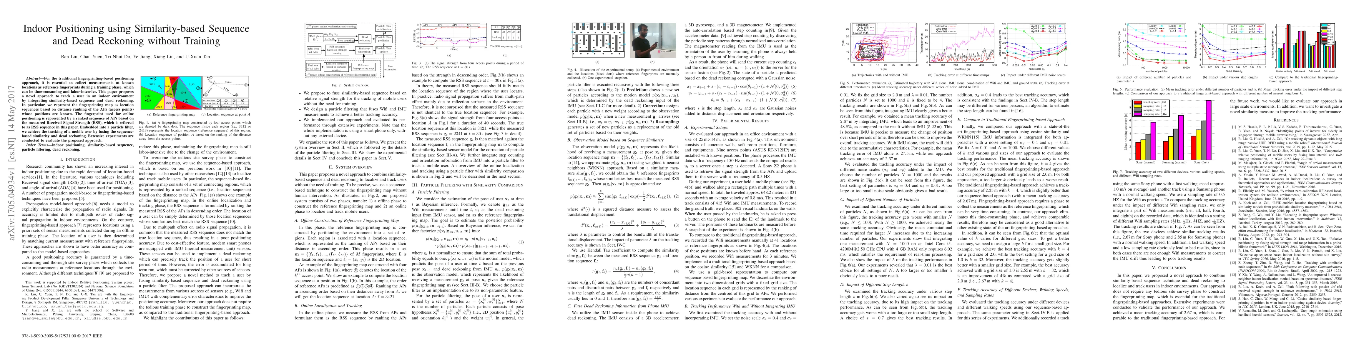 This paper introduces a novel indoor positioning method that combines similarity-based sequence and dead reckoning without requiring a training phase. It represents the fingerprinting map as location sequences based on known access points and uses a ranked RSS sequence for real-time positioning, achieving user tracking via a particle filter.