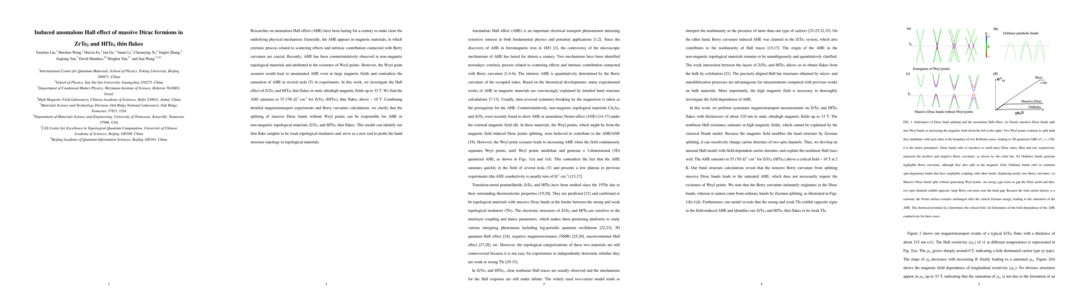 This paper investigates the anomalous Hall effect (AHE) in non-magnetic topological materials ZrTe5 and HfTe5, finding it saturates at high magnetic fields. The study attributes the observed AHE to the splitting of massive Dirac bands, identifying the materials as weak topological insulators.