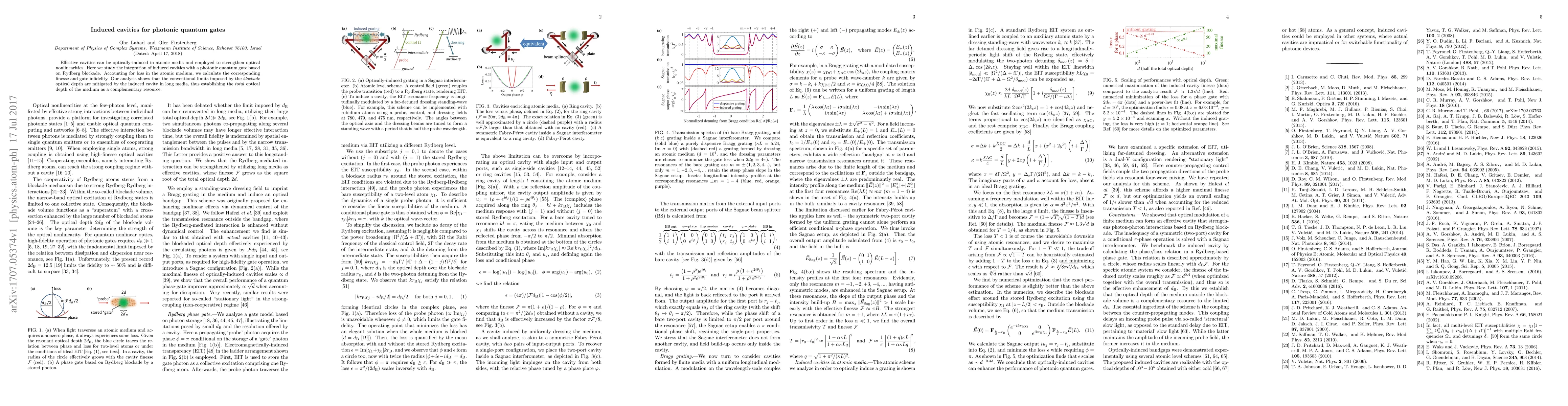 Effective cavities can be optically-induced in atomic media and employed to strengthen optical nonlinearities. Here we study the integration of induced cavities with a photonic quantum gate based on Rydberg blockade. Accounting for loss in the atomic medium, we calculate the corresponding finesse and gate infidelity. Our analysis shows that the conventional limits imposed by the blockade optical depth are mitigated by the induced cavity in long media, thus establishing the total optical depth of the medium as a complementary resource.