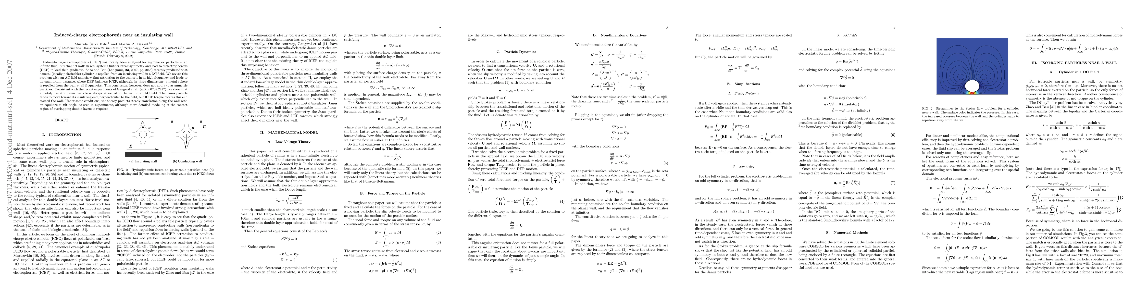 Induced-charge electrophoresis (ICEP) has mostly been analyzed for asymmetric particles in an infinite fluid, but channel walls in real systems further break symmetry and lead to dielectrophoresis (DEP) in local field gradients. Zhao and Bau (Langmuir, \textbf{23}, 2007, pp 4053) recently predicted that a metal (ideally polarizable) cylinder is repelled from an insulating wall in a DC field. We revisit this problem with an AC field and show that attraction to the wall sets in at high frequency and leads to an equilibrium distance, where DEP balances ICEP, although, in three dimensions, a metal sphere is repelled from the wall at all frequencies. This conclusion, however, does not apply to asymmetric particles. Consistent with the recent experiments of Gangwal et al. (arXiv:0708.2417), we show that a metal/insulator Janus particle is always attracted to the wall in an AC field. The Janus particle tends to move toward its insulating end, perpendicular to the field, but ICEP torque rotates this end toward the wall. Under some conditions, the theory predicts steady translation along the wall with an equilibrium tilt angle, as seen in experiments, although more detailed modeling of the contact region of overlapping double layers is required.