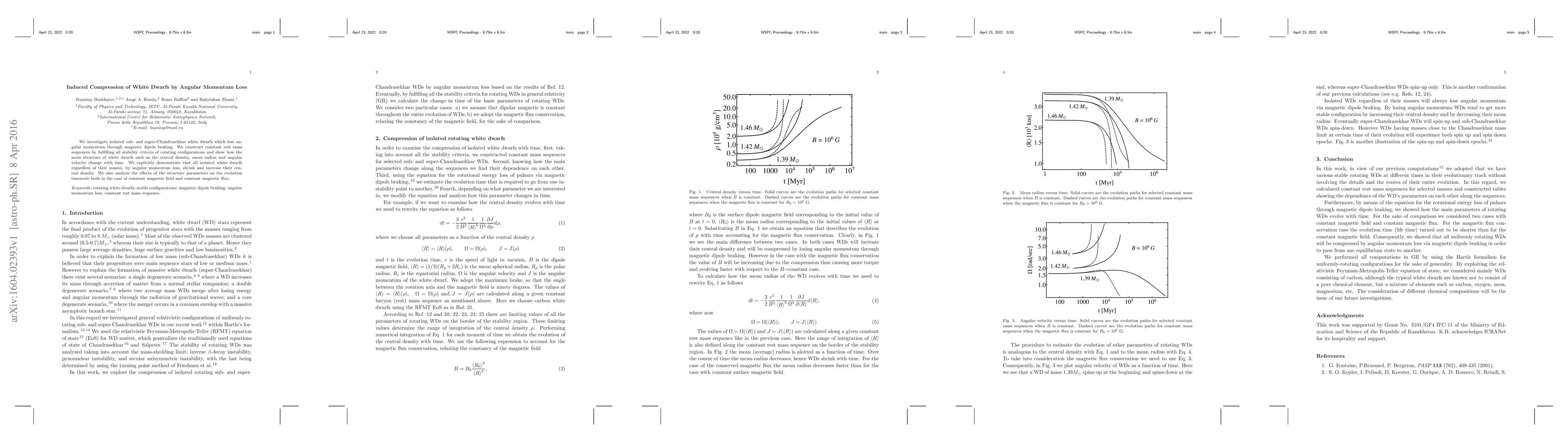 We investigate isolated sub- and super-Chandrasekhar white dwarfs which lose angular momentum through magnetic dipole braking. We construct constant rest mass sequences by fulfilling all stability criteria of rotating configurations and show how the main structure of white dwarfs such as the central density, mean radius and angular velocity change with time. We explicitly demonstrate that all isolated white dwarfs regardless of their masses, by angular momentum loss, shrink and increase their central density. We also analyze the effects of the structure parameters on the evolution timescale both in the case of constant magnetic field and constant magnetic flux.
