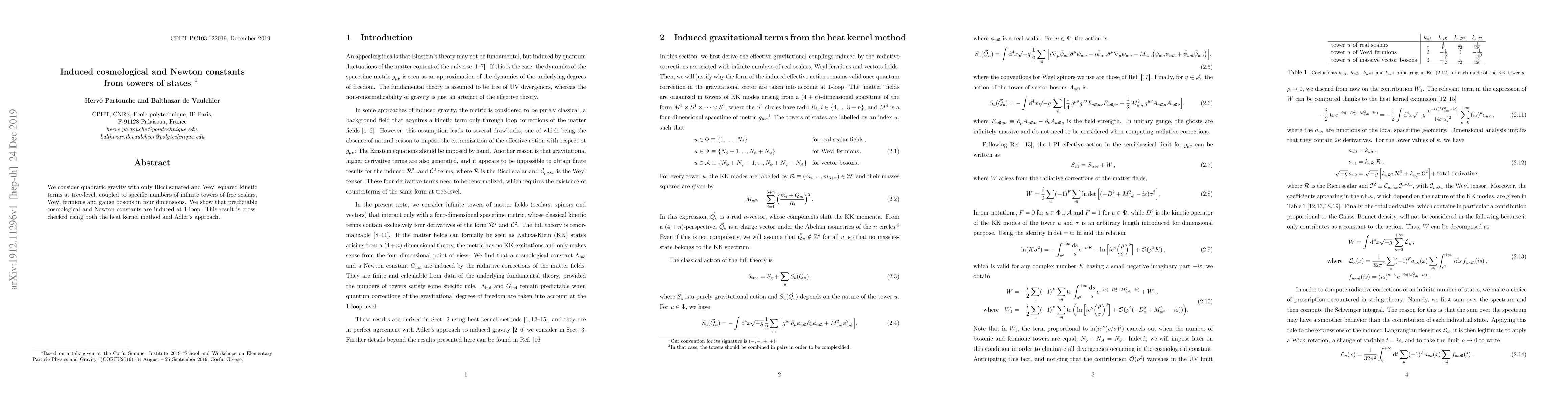 We consider quadratic gravity with only Ricci squared and Weyl squared kinetic terms at tree-level, coupled to specific numbers of infinite towers of free scalars, Weyl fermions and gauge bosons in four dimensions. We show that predictable cosmological and Newton constants are induced at 1-loop. This result is cross-checked using both the heat kernel method and Adler's approach.