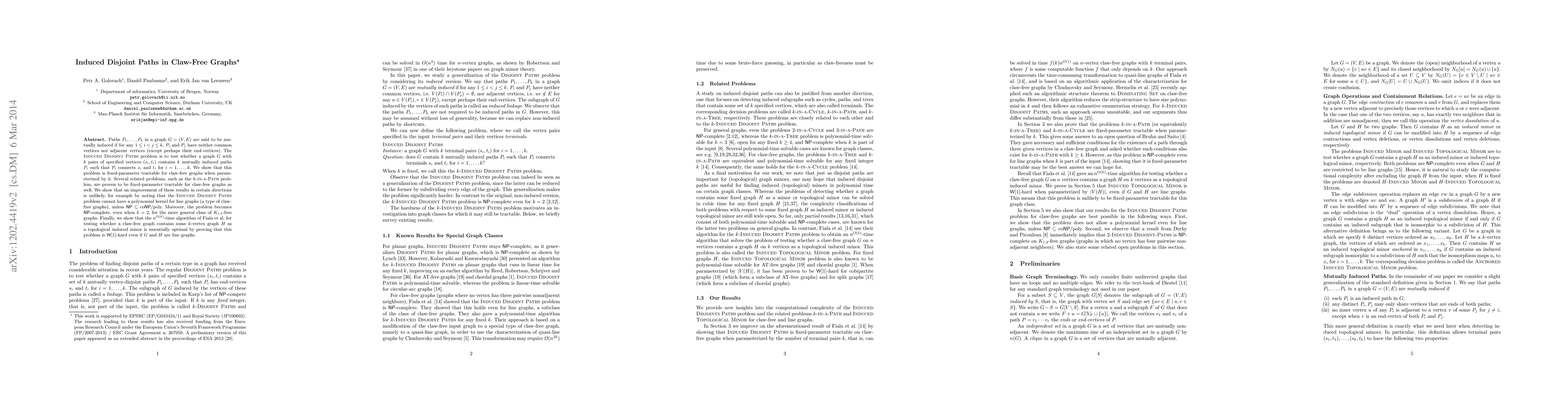 The paper demonstrates that the Induced Disjoint Paths problem is fixed-parameter tractable for claw-free graphs when parameterized by k, while showing it is unlikely to improve in certain directions and becomes NP-complete for K_1,4-free graphs even with k=2. It also proves the optimality of an existing algorithm for testing topological induced minors in claw-free graphs.