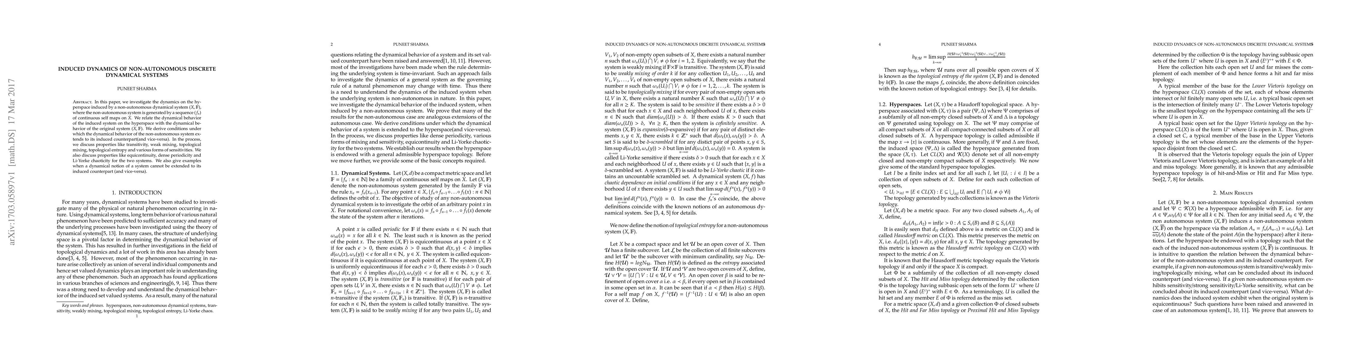 This paper explores the dynamics of non-autonomous discrete dynamical systems and their induced counterparts on hyperspaces, relating their dynamical behaviors and deriving conditions for the extension of properties such as transitivity, mixing, entropy, and chaos between the two systems. It also provides examples where certain dynamical notions do not extend between them.