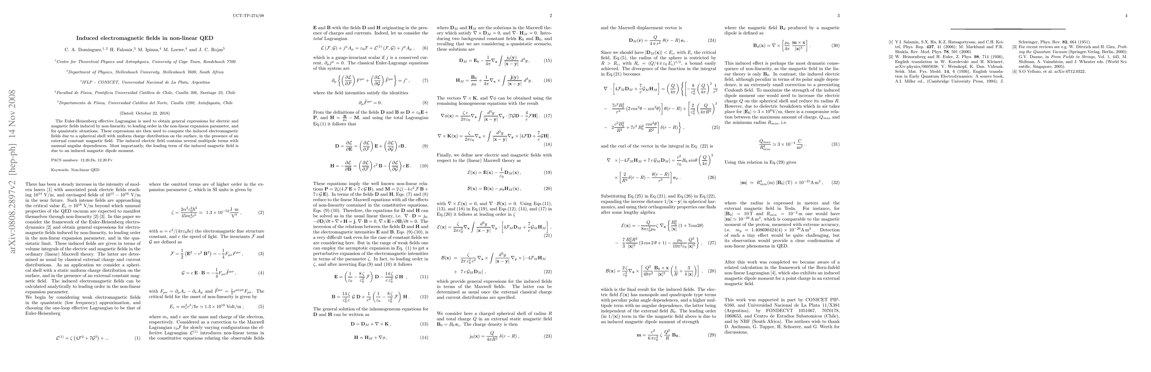 The Euler-Heisenberg effective Lagrangian is used to obtain general expressions for electric and magnetic fields induced by non-linearity, to leading order in the non-linear expansion parameter, and for quasistatic situations. These expressions are then used to compute the induced electromagnetic fields due to a spherical shell with uniform charge distribution on the surface, in the presence of an external constant magnetic field. The induced electric field contains several multipole terms with unusual angular dependences. Most importantly, the leading term of the induced magnetic field is due to an induced magnetic dipole moment.
