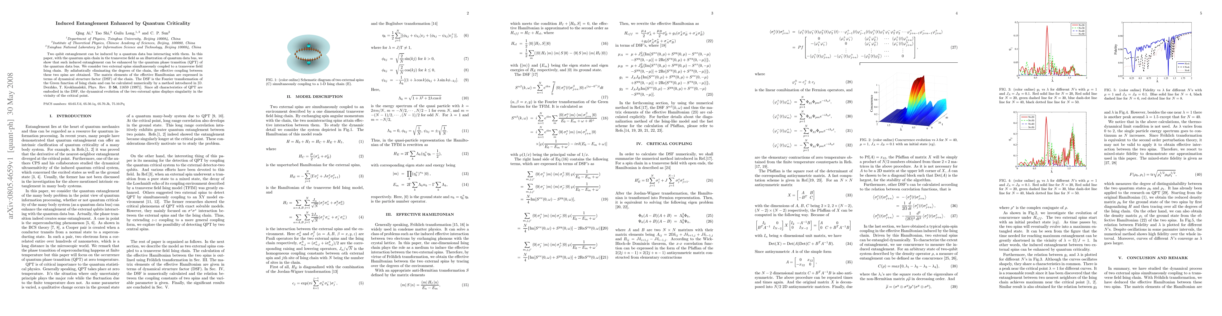 Researchers show that entanglement between two qubits can be enhanced by a quantum system undergoing a phase transition, leading to singularities in the spins' dynamics near the critical point. This discovery has implications for the study of quantum phases and potential applications in quantum computing.