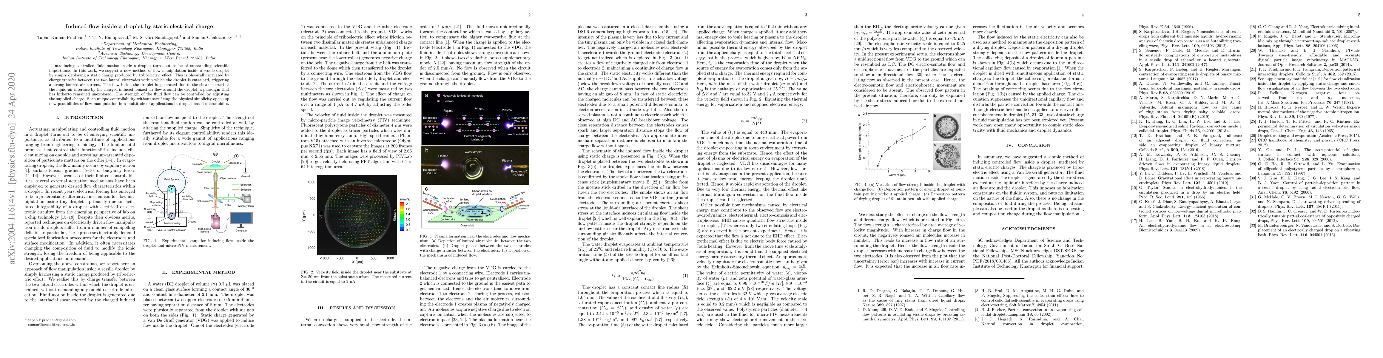 This paper proposes a novel method to induce fluid motion within a sessile droplet using a static charge generated via the triboelectric effect. The method leverages ionized air currents triggered by charge transfer between lateral electrodes, offering precise control over the droplet's internal flow by adjusting the supplied charge, thereby advancing microfluidic applications.