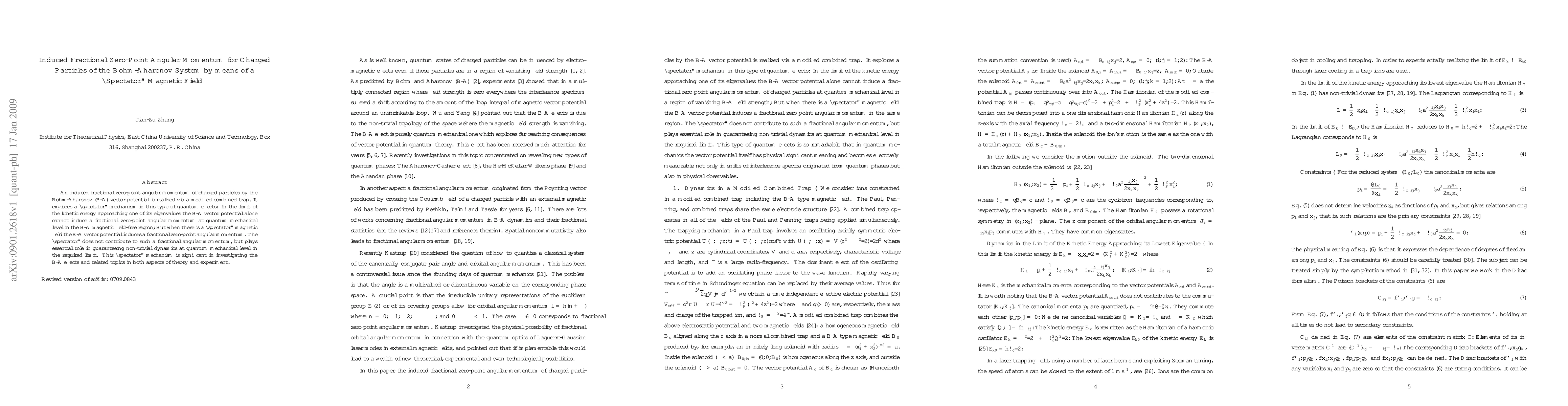 This paper investigates how a "spectator" magnetic field enables the Bohm-Aharonov vector potential to induce fractional zero-point angular momentum in charged particles, despite the absence of such induction in a magnetic field-free region. The "spectator" field is crucial for non-trivial dynamics in quantum mechanical limits.