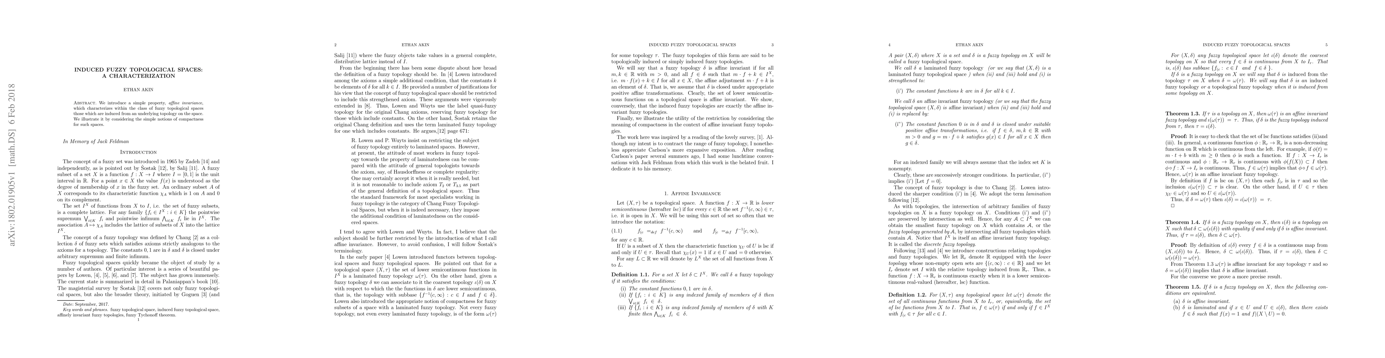 We introduce a simple property, affine invariance, which characterizes within the class of fuzzy topological spaces those which are induced from an underlying topology on the space. We illustrate it by considering the simple notions of compactness for such spaces.