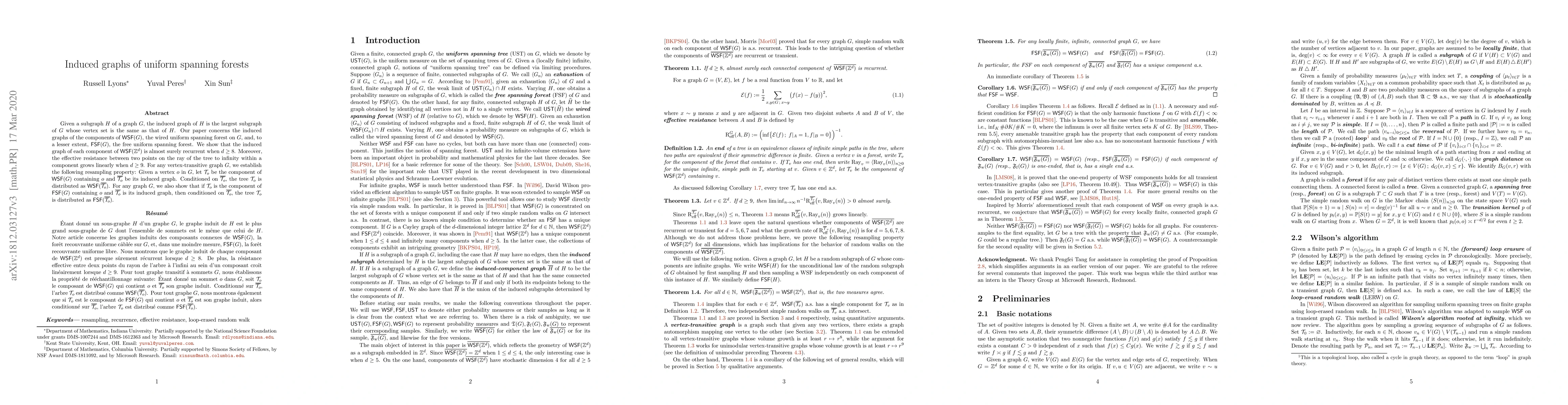 Given a subgraph $H$ of a graph $G$, the induced graph of $H$ is the largest subgraph of $G$ whose vertex set is the same as that of $H$. Our paper concerns the induced graphs of the components of $\operatorname{WSF}(G)$, the wired spanning forest on $G$, and, to a lesser extent, $\operatorname{FSF}(G)$, the free uniform spanning forest. We show that the induced graph of each component of $\operatorname{WSF}(\mathbb Z^d$) is almost surely recurrent when $d\ge 8$. Moreover, the effective resistance between two points on the ray of the tree to infinity within a component grows linearly when $d\ge9$. For any vertex-transitive graph $G$, we establish the following resampling property: Given a vertex $o$ in $G$, let $\mathcal T_o$ be the component of $\operatorname{WSF}(G)$ containing $o$ and $\overline{\mathcal{T}_o}$ be its induced graph. Conditioned on $\overline{\mathcal{T}_o}$, the tree $\mathcal T_o$ is distributed as $\operatorname{WSF}(\overline{\mathcal{T}_o})$. For any graph $G$, we also show that if $\mathcal T_o$ is the component of $\operatorname{FSF}(G)$ containing $o$ and $\overline{\mathcal{T}_o}$ is its induced graph, then conditioned on $\overline{\mathcal{T}_o}$, the tree $\mathcal T_o$ is distributed as $\operatorname{FSF}(\overline{\mathcal{T}_o})$.