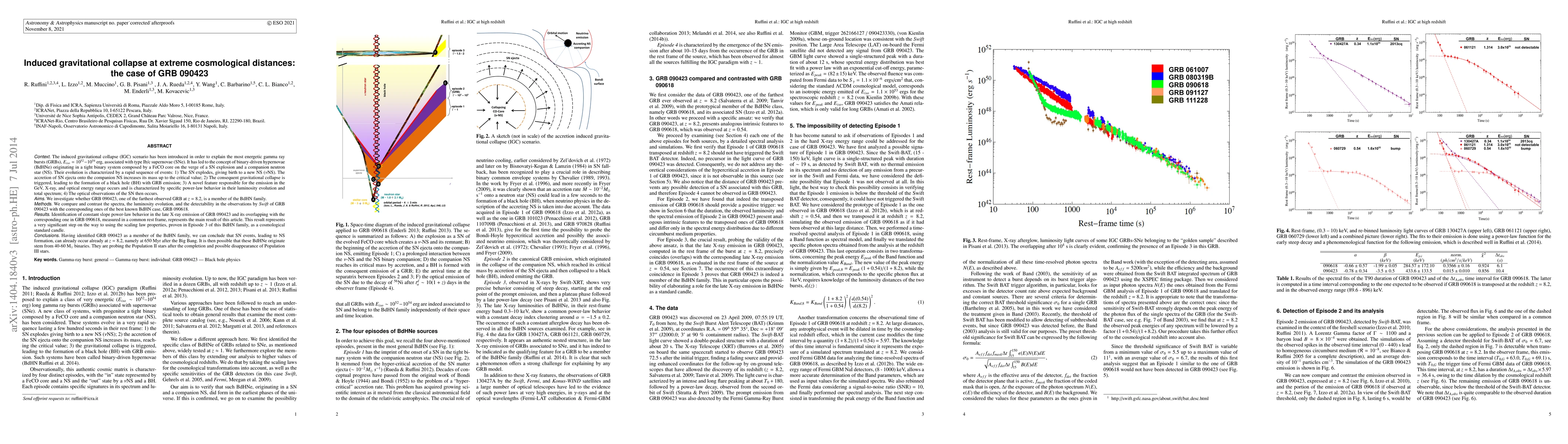 CONTEXT: The induced gravitational collapse (IGC) scenario has been introduced in order to explain the most energetic gamma ray bursts (GRBs), Eiso=10^{52}-10^{54}erg, associated with type Ib/c supernovae (SNe). It has led to the concept of binary-driven hypernovae (BdHNe) originating in a tight binary system composed by a FeCO core on the verge of a SN explosion and a companion neutron star (NS). Their evolution is characterized by a rapid sequence of events: [...]. AIMS: We investigate whether GRB 090423, one of the farthest observed GRB at z=8.2, is a member of the BdHN family. METHODS: We compare and contrast the spectra, the luminosity evolution and the detectability in the observations by Swift of GRB 090423 with the corresponding ones of the best known BdHN case, GRB 090618. RESULTS: Identification of constant slope power-law behavior in the late X-ray emission of GRB 090423 and its overlapping with the corresponding one in GRB 090618, measured in a common rest frame, represents the main result of this article. This result represents a very significant step on the way to using the scaling law properties, proven in Episode 3 of this BdHN family, as a cosmological standard candle. CONCLUSIONS: Having identified GRB 090423 as a member of the BdHN family, we can conclude that SN events, leading to NS formation, can already occur already at z=8.2, namely at 650 Myr after the Big Bang. It is then possible that these BdHNe originate stem from 40-60 M_{\odot} binaries. They are probing the Population II stars after the completion and possible disappearance of Population III stars.