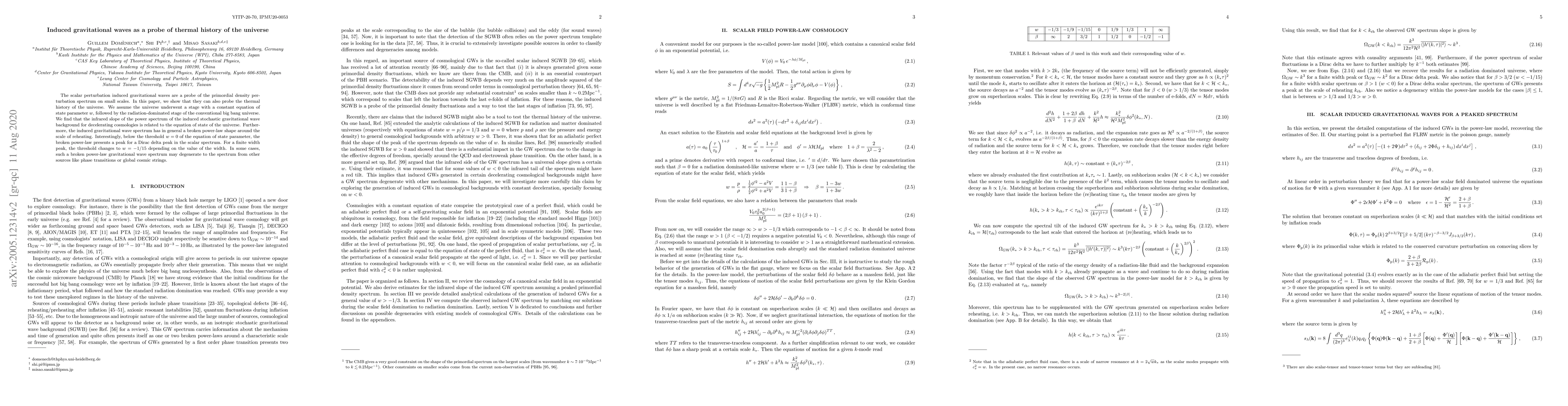 This paper investigates how scalar perturbation-induced gravitational waves can reveal the thermal history of the universe, particularly the equation of state parameter $w$. It finds that the infrared slope of the induced gravitational wave spectrum correlates with $w$ and that a broken power-law shape emerges around the reheating scale, with a peak below $w=0$ depending on the scalar spectrum's width.