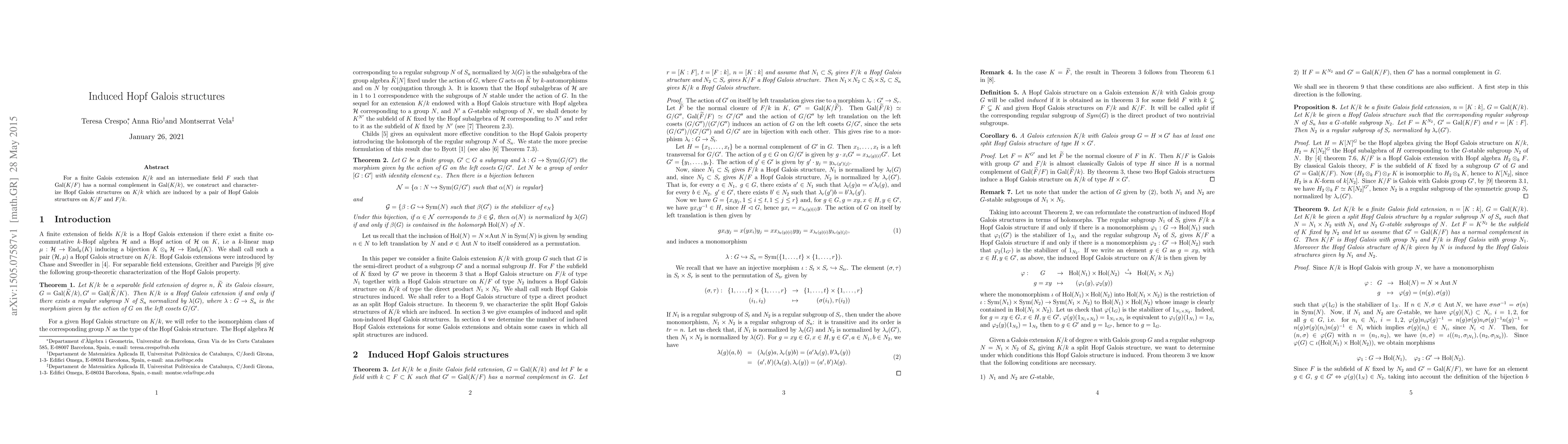This paper constructs and characterizes Hopf Galois structures on a finite Galois extension K/k, induced by Hopf Galois structures on intermediate extensions K/F and F/k, given that Gal(K/F) has a normal complement in Gal(K/k). The work provides a detailed understanding of these induced structures.
