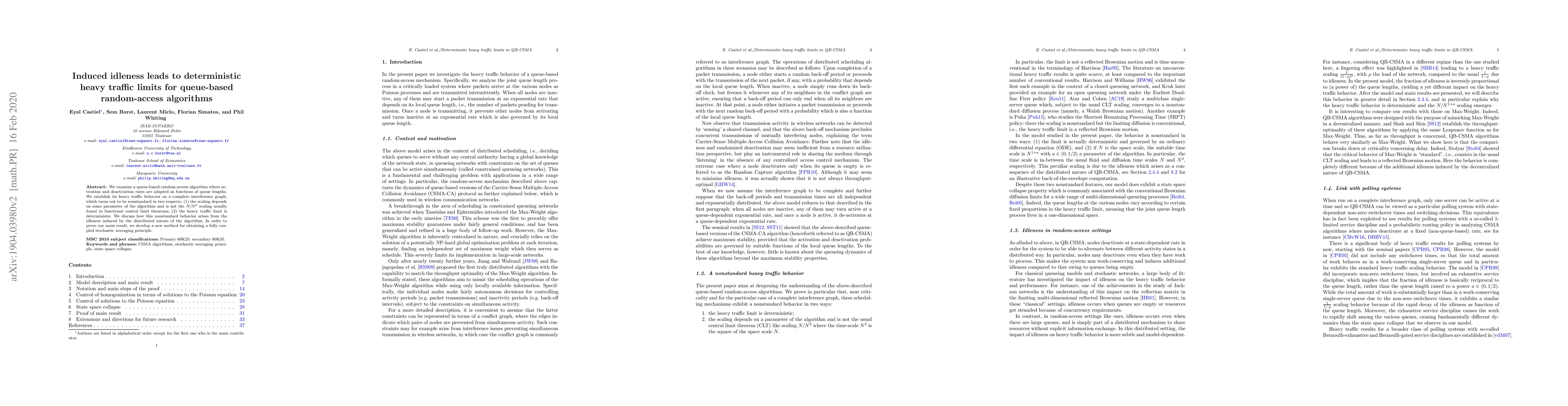 We examine a queue-based random-access algorithm where activation and deactivation rates are adapted as functions of queue lengths. We establish its heavy traffic behavior on a complete interference graph, which turns out to be highly nonstandard in two respects: (1) the scaling depends on some parameter of the algorithm and is not the $N/N^2$ scaling usually found in functional central limit theorems; (2) the heavy traffic limit is deterministic. We discuss how this nonstandard behavior arises from the idleness induced by the distributed nature of the algorithm. In order to prove our main result, we developed a new method for obtaining a fully coupled stochastic averaging principle.
