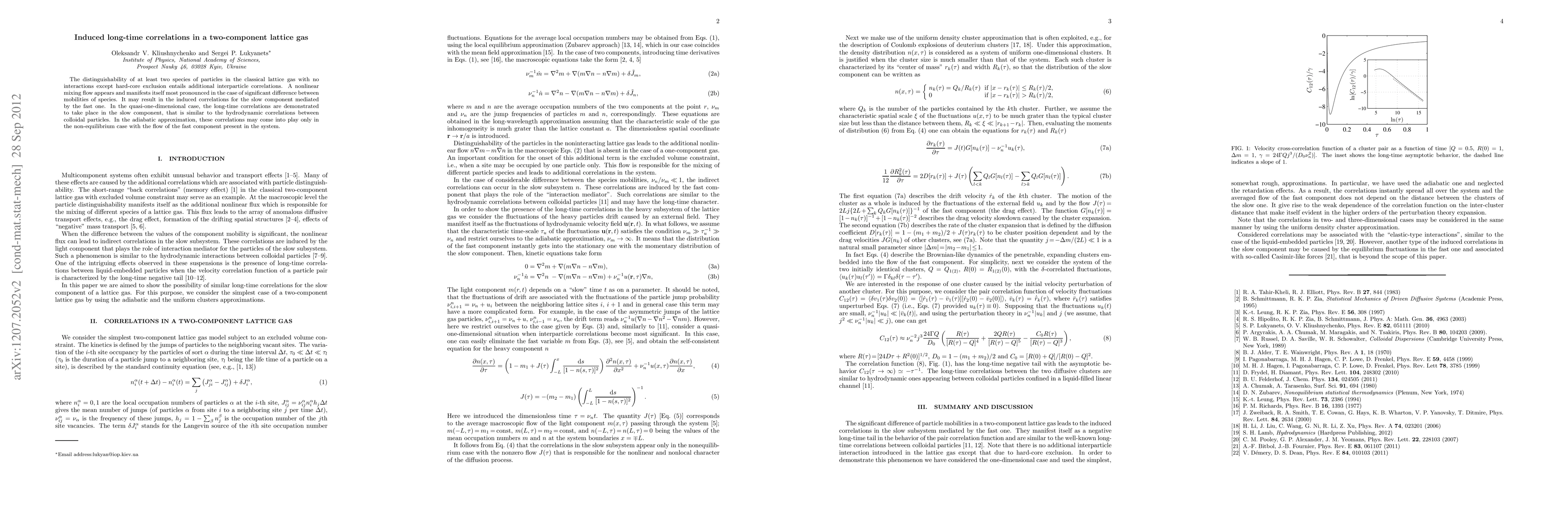 The paper presents a theoretical framework for understanding long-time correlations induced in a slow subsystem of a two-component lattice gas due to the presence and flow of a faster component.