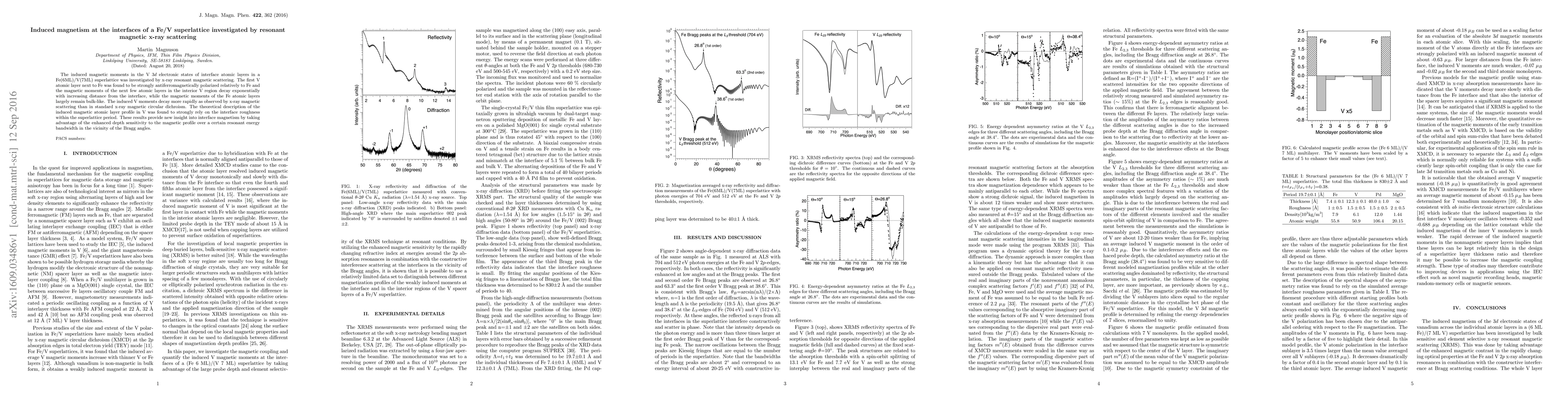 This study investigates the induced magnetic moments in a Fe/V superlattice using resonant magnetic x-ray scattering, revealing strong antiferromagnetic polarization in the first V atomic layer adjacent to Fe, with subsequent V layers showing exponential decay in magnetic moments. The research highlights the enhanced depth sensitivity of x-ray scattering for probing magnetic profiles.