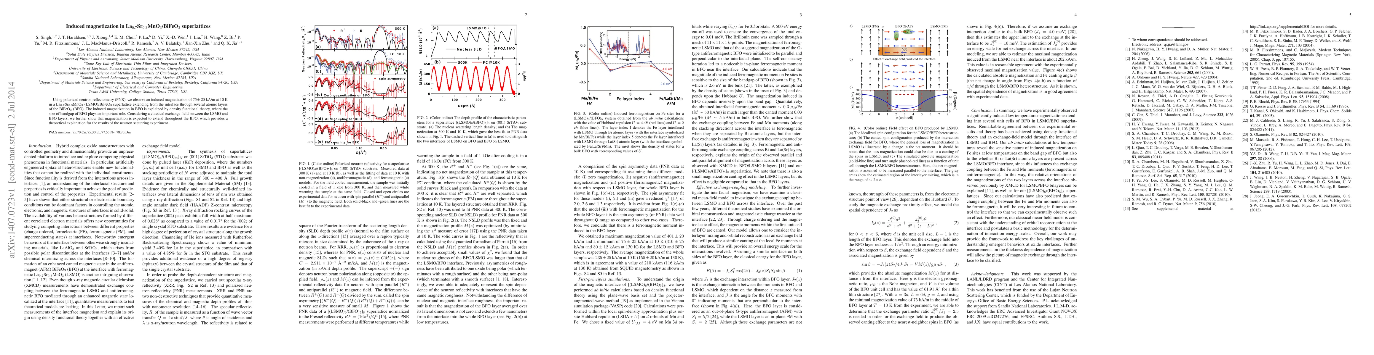 This research utilizes polarized neutron reflectometry to detect an induced magnetization of 75±25 kA/m in a La$_{0.7}$Sr$_{0.3}$MnO$_3$/BiFeO$_3$ superlattice at 10 K, extending beyond the interface into BiFeO$_3$. Density functional theory suggests the BFO's bandgap size is crucial, while classical exchange field models predict full magnetization within the BiFeO$_3$ layer.
