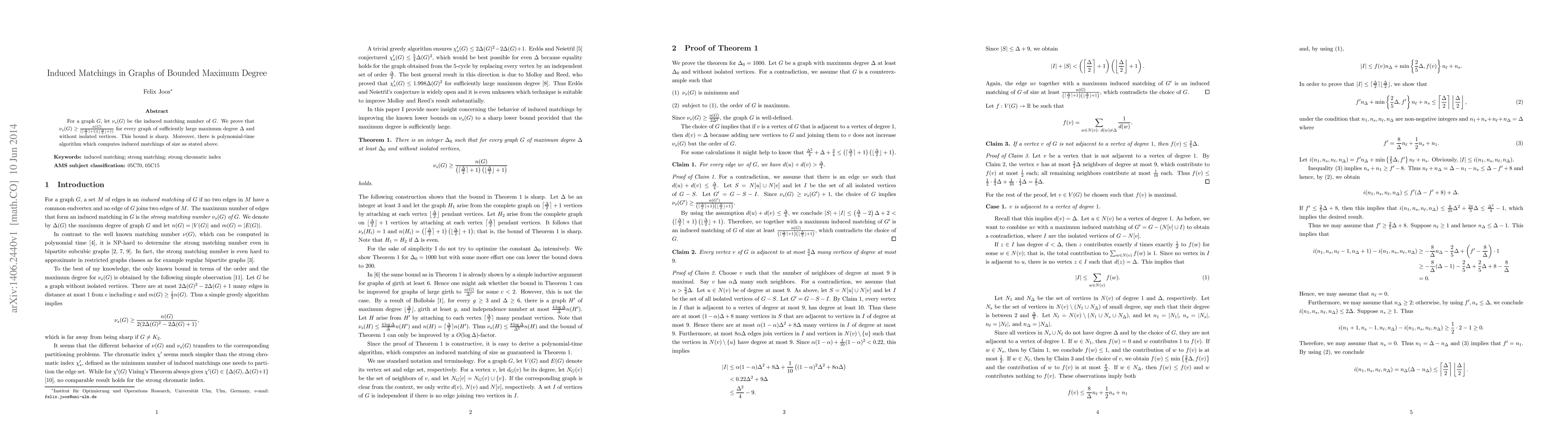 For a graph $G$, let $\nu_s(G)$ be the induced matching number of $G$. We prove that $\nu_s(G) \geq \frac{n(G)}{(\lceil\frac{\Delta}{2}\rceil+1) (\lfloor\frac{\Delta}{2}\rfloor+1)}$ for every graph of sufficiently large maximum degree $\Delta$ and without isolated vertices. This bound is sharp. Moreover, there is polynomial-time algorithm which computes induced matchings of size as stated above.
