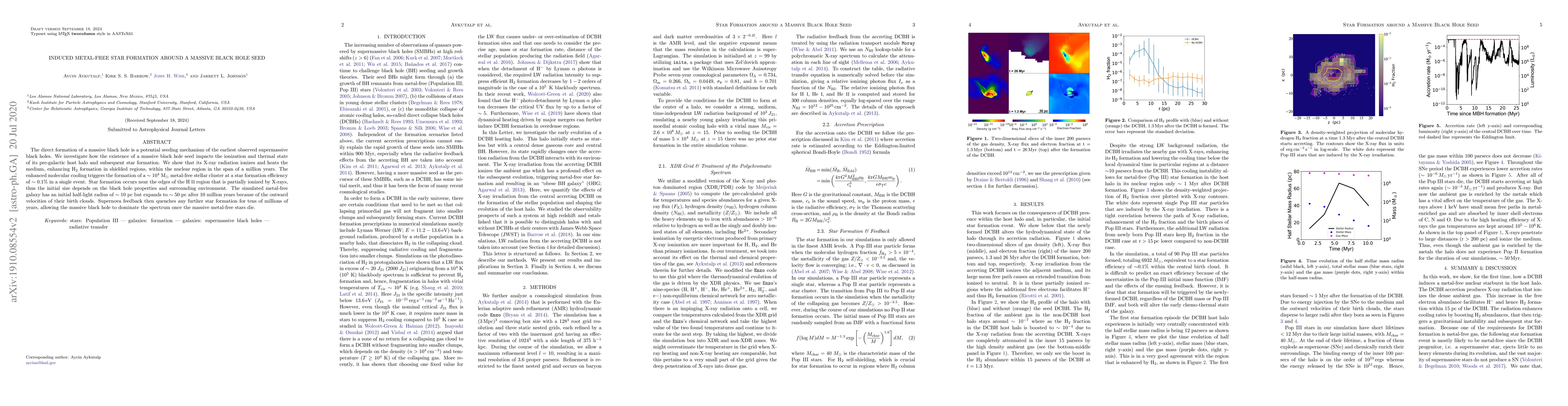 This research investigates the impact of a massive black hole seed on star formation within its host halo. It reveals that the black hole's X-ray radiation, while ionizing and heating the medium, paradoxically enhances molecular hydrogen formation and triggers the formation of a 10^4 M_sun metal-free stellar cluster. This occurs within a million years, with the cluster initially residing in a 10 pc radius but expanding to 50 pc over 10 million years. Supernova feedback subsequently halts further star formation, allowing the massive black hole to dominate the galaxy's spectrum as metal-free stars expire.