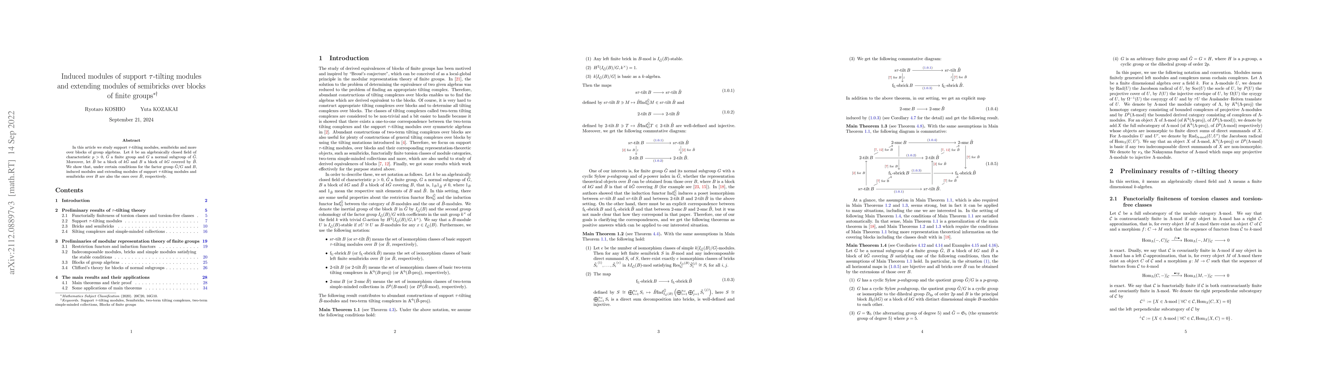 This paper investigates support $\tau$-tilting modules, semibricks, and related constructions over blocks of group algebras, particularly focusing on induced and extending modules in the context of finite groups and their normal subgroups. It demonstrates that under specific conditions, these modules behave consistently across blocks of group algebras.