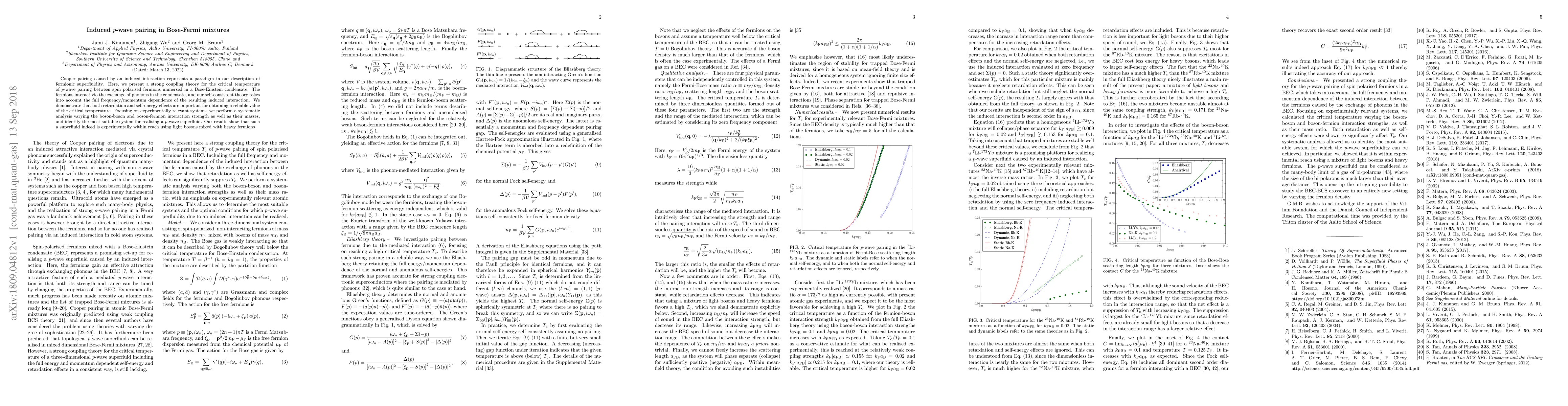 Cooper pairing caused by an induced interaction represents a paradigm in our description of fermionic superfluidity. Here, we present a strong coupling theory for the critical temperature of $p$-wave pairing between spin polarised fermions immersed in a Bose-Einstein condensate. The fermions interact via the exchange of phonons in the condensate, and our self-consistent theory takes into account the full frequency/momentum dependence of the resulting induced interaction. We demonstrate that both retardation and self-energy effects are important for obtaining a reliable value of the critical temperature. Focusing on experimentally relevant systems, we perform a systematic analysis varying the boson-boson and boson-fermion interaction strength as well as their masses, and identify the most suitable system for realising a $p$-wave superfluid. Our results show that such a superfluid indeed is experimentally within reach using light bosons mixed with heavy fermions.