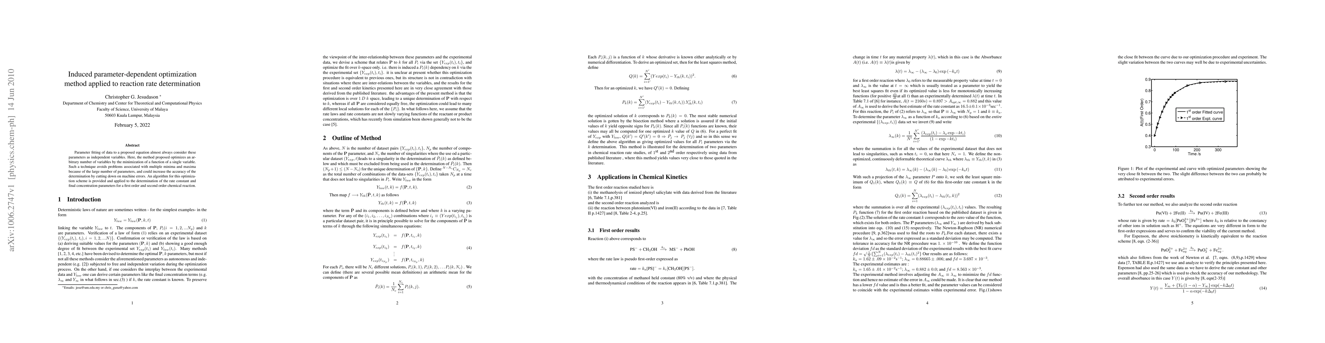 Parameter fitting of data to a proposed equation almost always consider these parameters as independent variables. Here, the method proposed optimizes an arbitrary number of variables by the minimization of a function of a single variable. Such a technique avoids problems associated with multiple minima and maxima because of the large number of parameters, and could increase the accuracy of the determination by cutting down on machine errors. An algorithm for this optimization scheme is provided and applied to the determination of the rate constant and final concentration parameters for a first order and second order chemical reaction.