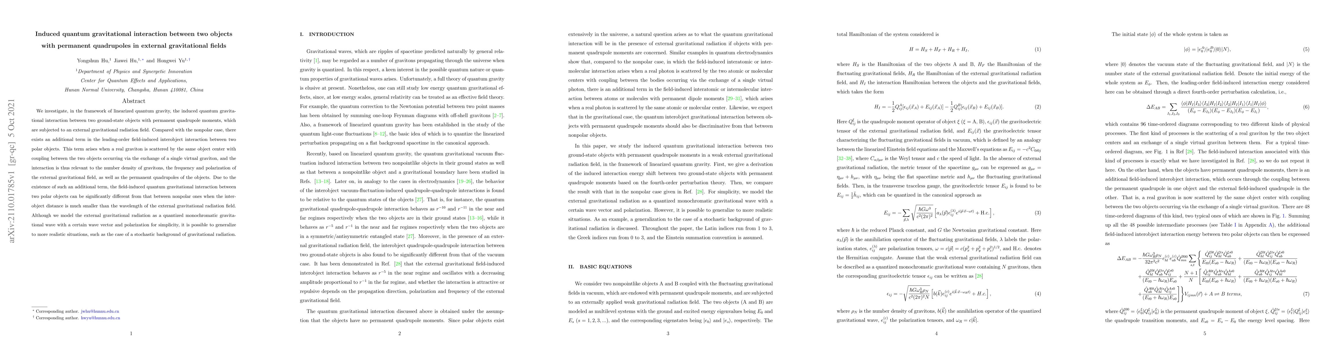 This paper explores the quantum gravitational interaction between two polar objects with permanent quadrupoles in an external gravitational field, revealing an additional interaction term compared to nonpolar objects. The interaction is influenced by the number density of gravitons, the external field's frequency and polarization, and the objects' quadrupole moments.