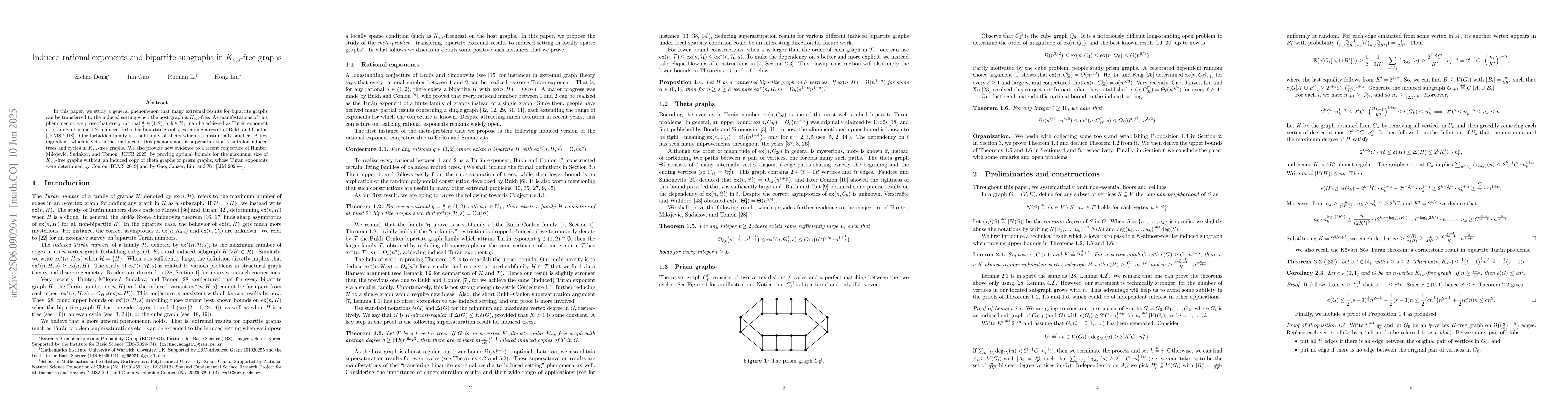 This paper proves that rational Turan exponents can be achieved in induced bipartite graphs, extending previous results, and provides new evidence for a conjecture about theta graphs and prism graphs in K_{s,s}-free graphs.