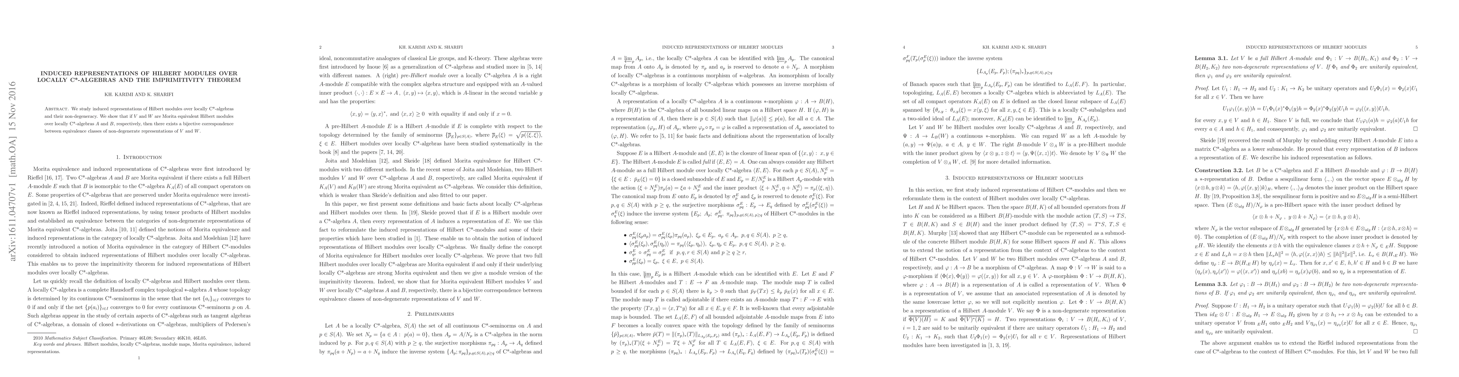 This paper explores induced representations of Hilbert modules over locally C*-algebras, proving that Morita equivalence between such modules induces a bijective correspondence between their non-degenerate representation equivalence classes.