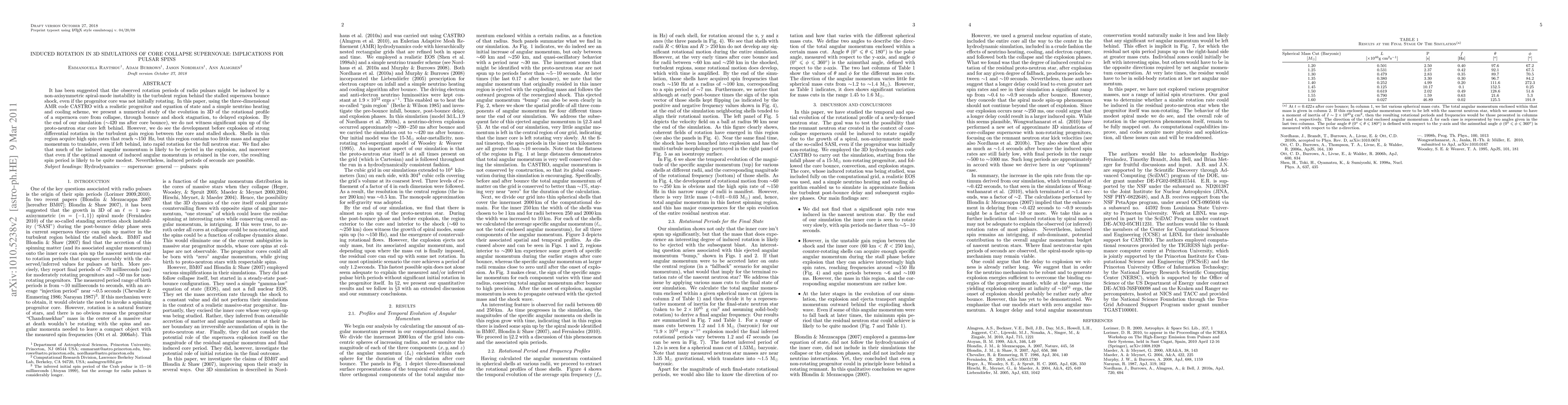 It has been suggested that the observed rotation periods of radio pulsars might be induced by a non-axisymmetric spiral-mode instability in the turbulent region behind the stalled supernova bounce shock, even if the progenitor core was not initially rotating. In this paper, using the three-dimensional AMR code CASTRO with a realistic progenitor and equation of state and a simple neutrino heating and cooling scheme, we present a numerical study of the evolution in 3D of the rotational profile of a supernova core from collapse, through bounce and shock stagnation, to delayed explosion. By the end of our simulation ($\sim$420 ms after core bounce), we do not witness significant spin up of the proto-neutron star core left behind. However, we do see the development before explosion of strong differential rotation in the turbulent gain region between the core and stalled shock. Shells in this region acquire high spin rates that reach $\sim$$150\,$ Hz, but this region contains too little mass and angular momentum to translate, even if left behind, into rapid rotation for the full neutron star. We find also that much of the induced angular momentum is likely to be ejected in the explosion, and moreover that even if the optimal amount of induced angular momentum is retained in the core, the resulting spin period is likely to be quite modest. Nevertheless, induced periods of seconds are possible.