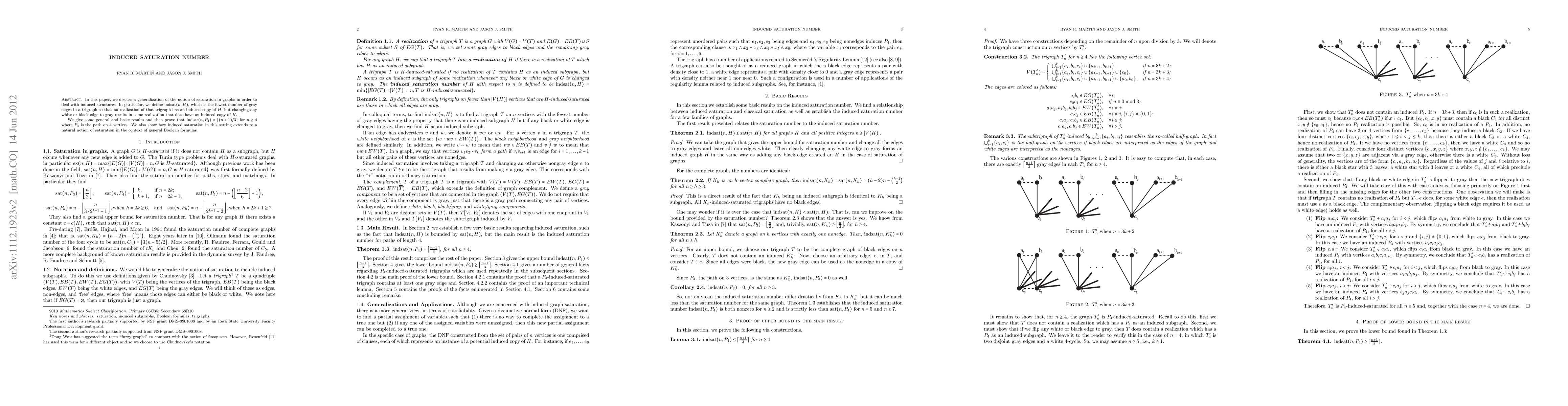 This paper generalizes the concept of saturation in graphs to induced structures, defining ${\rm indsat}(n,H)$ as the minimum number of gray edges in a trigraph ensuring no induced $H$ but any edge change induces $H$. It proves ${\rm indsat}(n,P_4)=\lceil (n+1)/3\rceil$ for $n\geq 4$ and extends induced saturation to Boolean formulas.